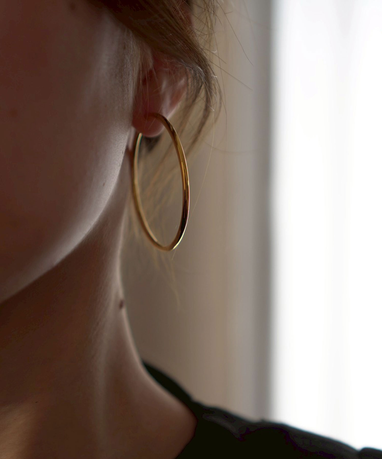 ジェンダーレスでお使いいただけるシンプルなフープピアス。艶感が美しいビジュアルと、なめらかな付け心地が魅力のアイテムです。