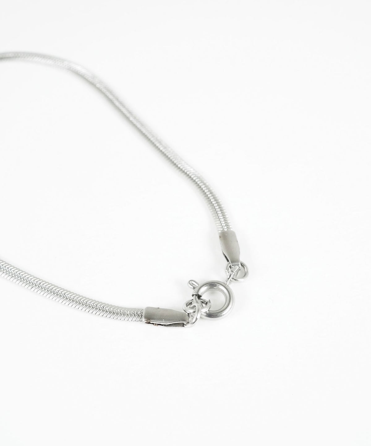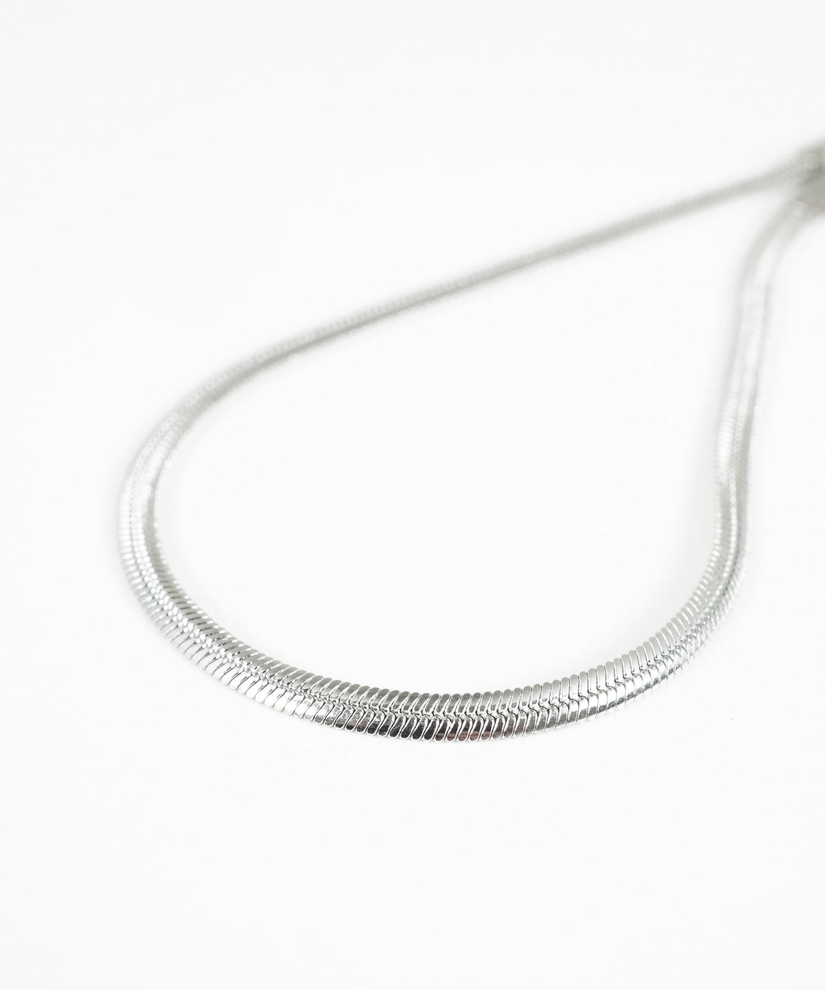 しなやかなラインと滑らかな肌触りが魅力の、フラットな面を持つスネークチェーンブレスレットです。光を面で捉えて反射する上品な輝きが、手元をすっきりと洗練された印象に。肌に吸い付くようなフィット感で、時計や他のブレスレットとの重ね付けも美しく決まります。錆びにくく変色しにくいステンレス製なので、お手入れが簡単なのも嬉しいポイントです。