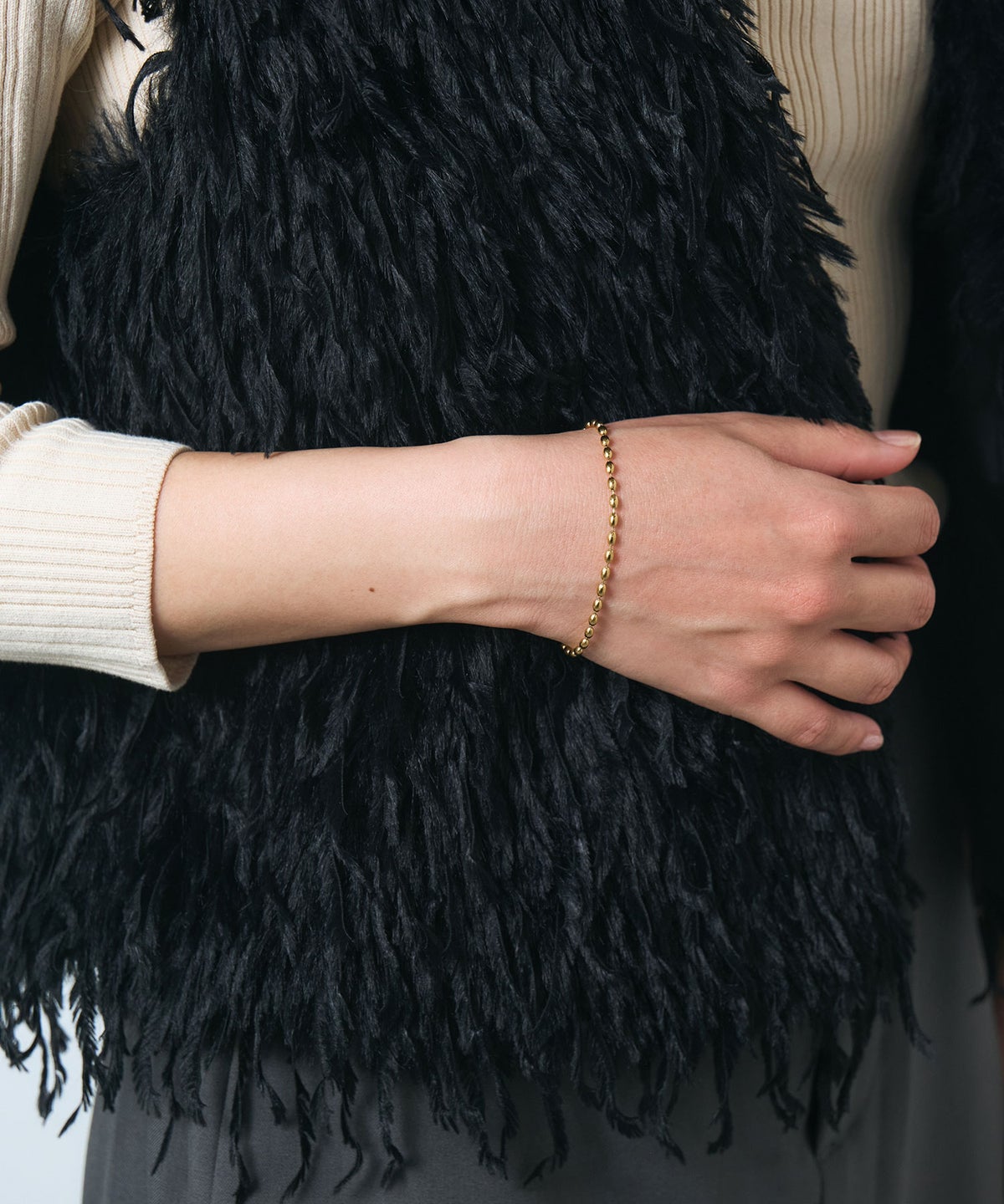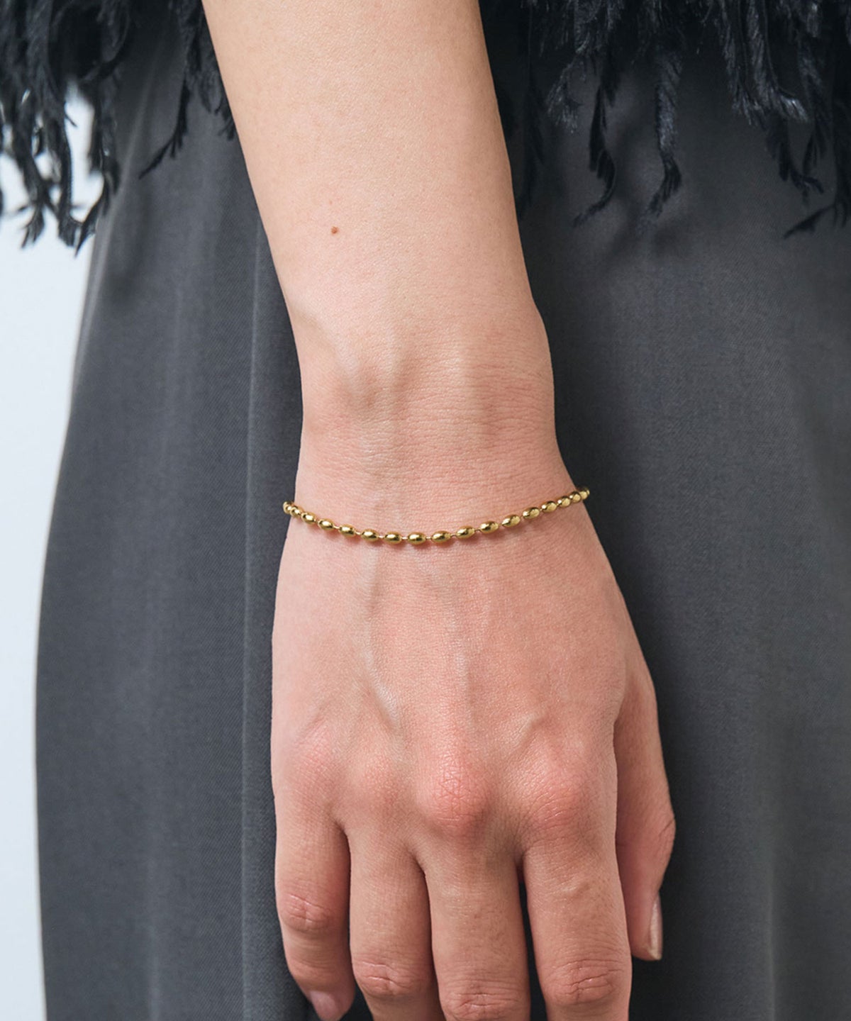 エッジを効かせた小ぶりな楕円状のコマを連ねた、繊細な輝きが魅力のチェーンブレスレットです。カッティングを施した一粒一粒が光を反射し、手元に上品な存在感をプラス。シンプルで洗練されたデザインは、どんな装いにも馴染みやすく、オンオフ問わず幅広いシーンで活躍します。錆びにくく変色しにくいステンレス製なので、お手入れが簡単なのも嬉しいポイントです。