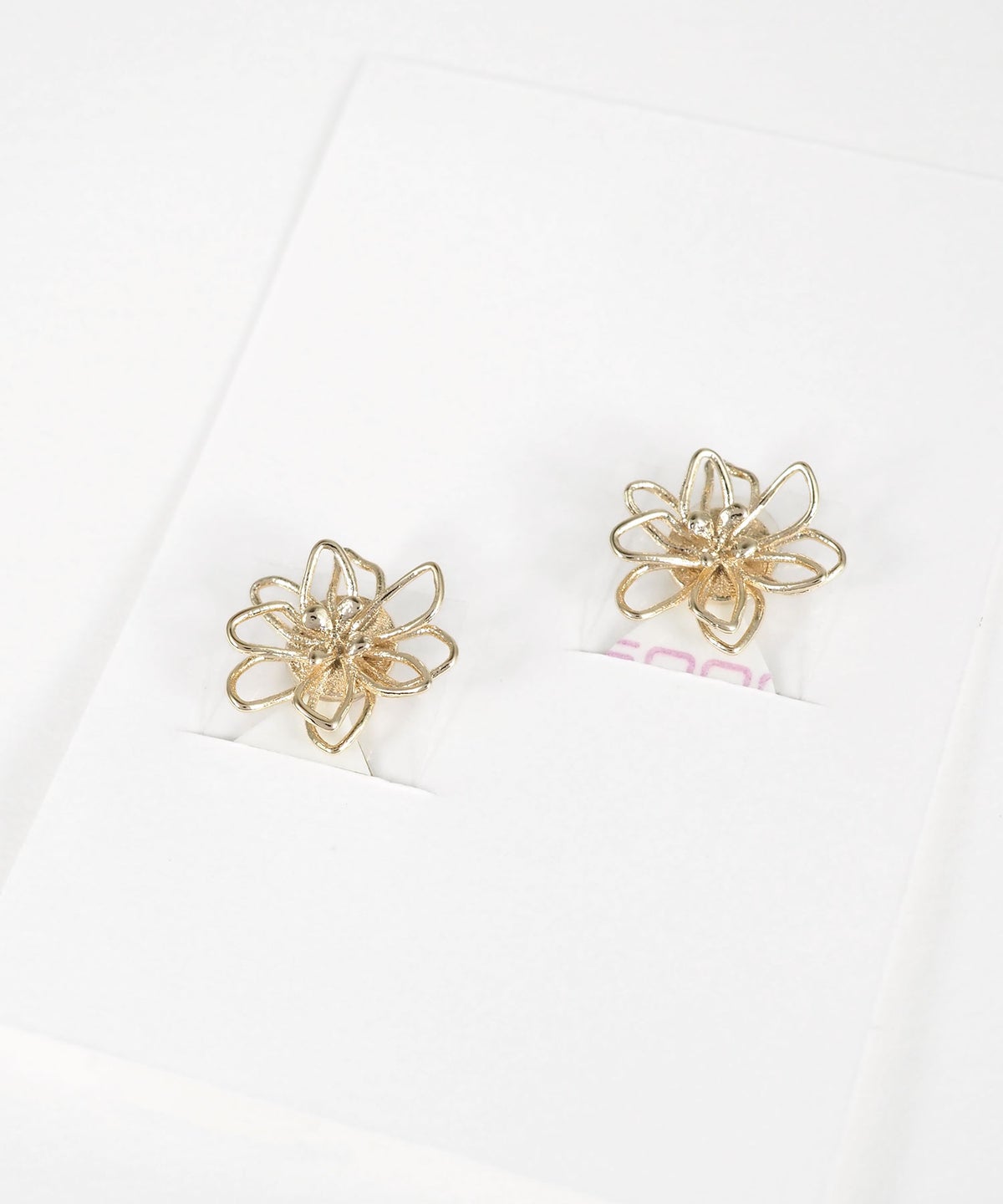 お花のシルエットを繊細なラインで描いた、フレームデザインのイヤリング。お花モチーフでも子供っぽくならず、洗練された大人の可愛さを楽しめます。