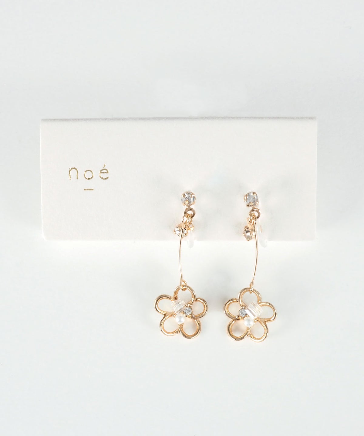 繊細なゴールドの透かしフラワーに、ビジューをあしらったエレガントに揺れる樹脂ノンホールイヤリング。落ち着いた色味のビジューが、さりげなくコーディネートの差し色になります。樹脂製のイヤリングパーツが素肌に溶け込み、まるでピアスみたいな華奢な見た目を叶えます。