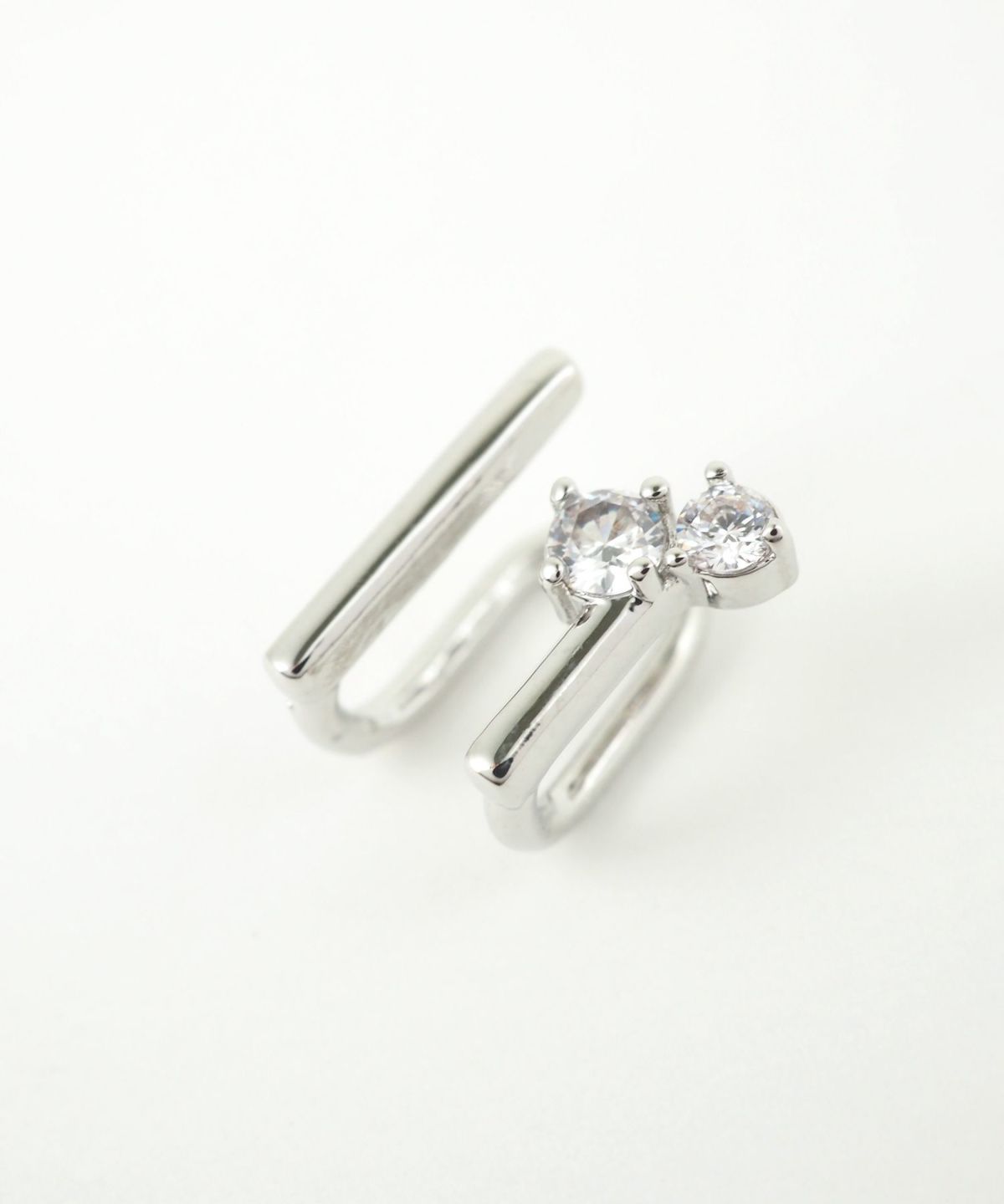 重ね付け風のデザインが魅力のラウンドメタルイヤリング。計算された2本のラインが、繊細なキュービックジルコニアの輝きを一層引き立てます。立体的なデザインが、いつものカジュアルコーデに「こなれ感」をプラスしてくれます。