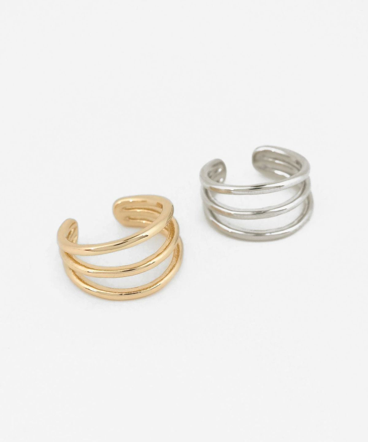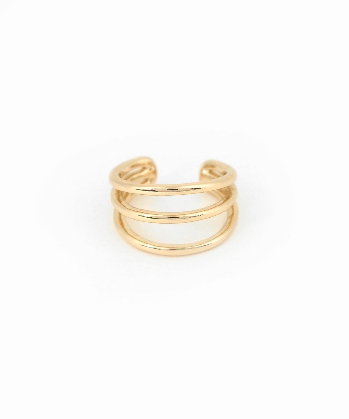 細身のラインを三本重ねた、スマートなフォルムのイヤーカフ。どんなスタイルにも合わせやすく、お手持ちのピアスやイヤリングとの重ね付けもおすすめ。日常のオシャレをさりげなくランクアップさせてくれる、頼れる一点です。ピアスの穴の有無に関わらず楽しめ、コーデ不要でおしゃれが叶います。片耳用です。