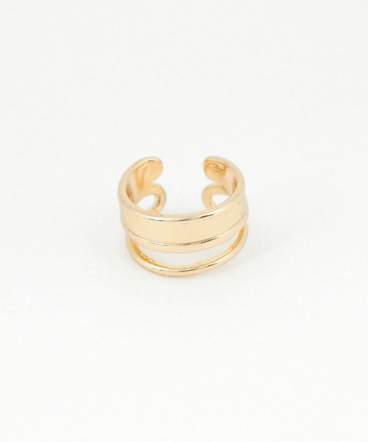 太いラインと、繊細な細いラインが重なる、一つ着けるだけでレイヤードスタイルが完成するイヤーカフ。どんなスタイルにも合わせやすく、お手持ちのピアスやイヤリングとの重ね付けもおすすめ。日常のオシャレをさりげなくランクアップさせてくれる、頼れる一点です。ピアスの穴の有無に関わらず楽しめ、コーデ不要でおしゃれが叶います。片耳用です。