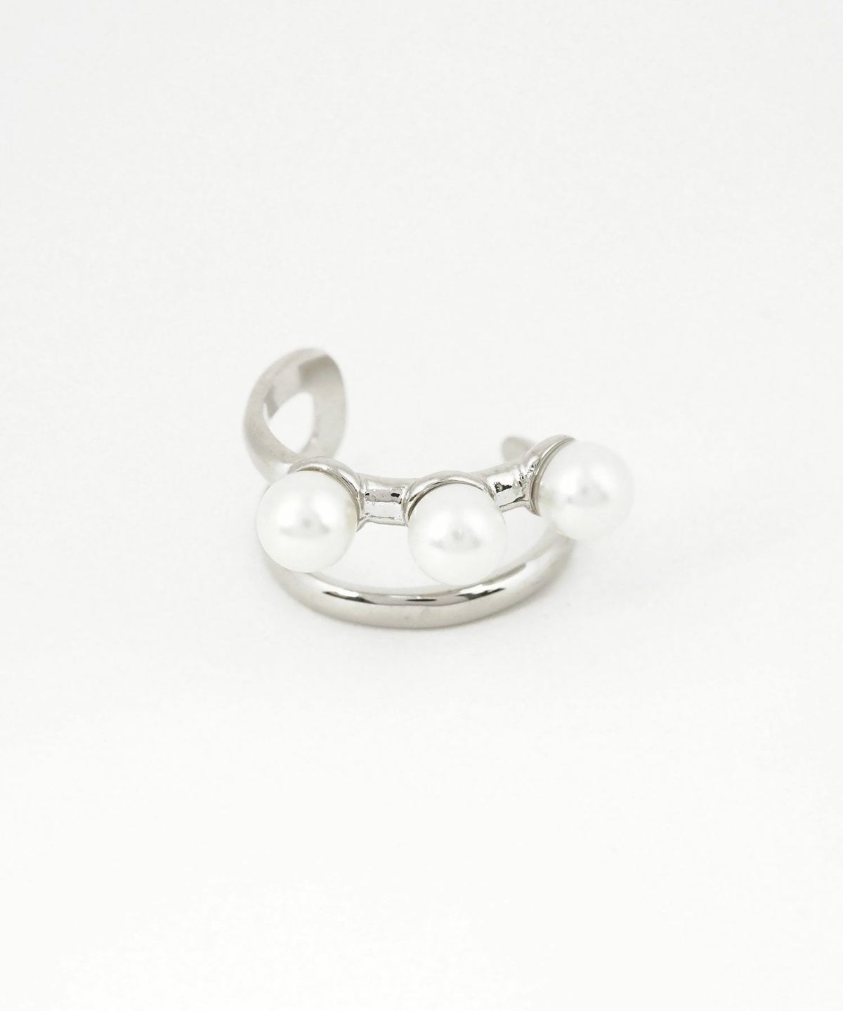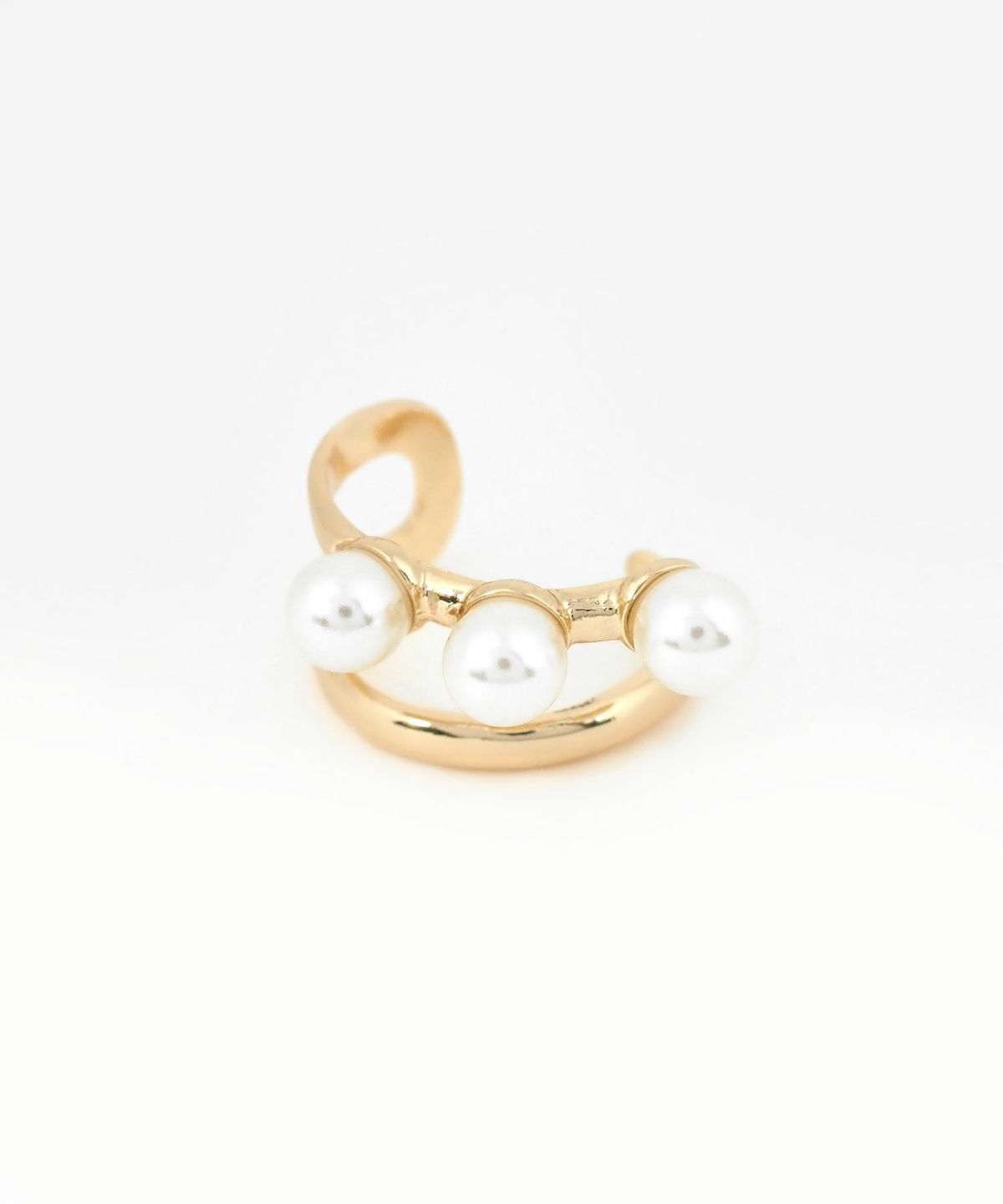 艶やかなパールを3つ贅沢にあしらった、存在感のある大きめサイズのイヤーカフ。どんなスタイルにも合わせやすく、お手持ちのピアスやイヤリングとの重ね付けもおすすめ。日常のオシャレをさりげなくランクアップさせてくれる、頼れる一点です。ピアスの穴の有無に関わらず楽しめ、コーデ不要でおしゃれが叶います。片耳用です。