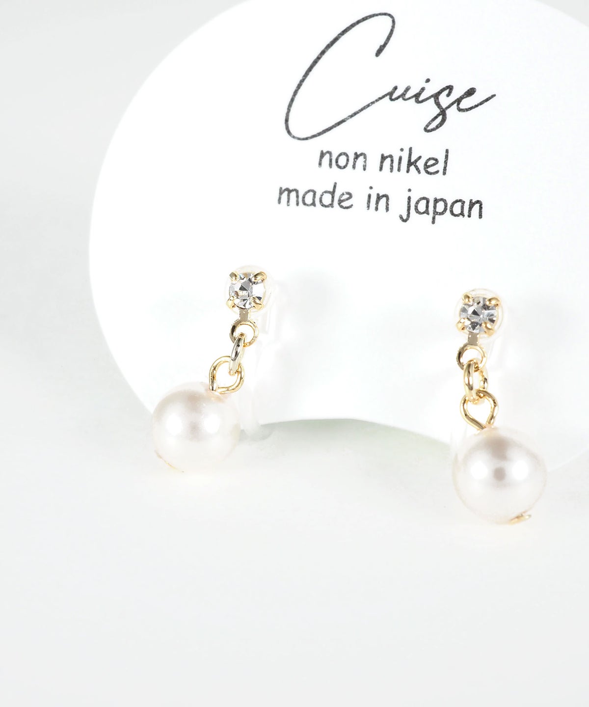 上品なパールに一粒ビジューを添えた、繊細に揺れる樹脂ノンホールイヤリング。ピアスのようなスッキリした見た目で、オフィスやデイリーはもちろん、オケージョンなどの華やかな席にも最適です。