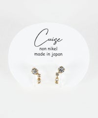 ピアスの穴を開けずにおしゃれを楽しめることから「ノンホールピアス」と呼ばれるイヤリング。留め具部分に、金属アレルギーの起こりにくい樹脂を使用しています。とても軽量で長時間つけても耳が痛くなりにくく、伸縮性があるため落ちにくいイヤリングです。またクリアパーツは目立ちにくく、ピアスのようにすっきり見えるのも嬉しいポイントです。全ての方に金属アレルギー反応が出ない(アレルギーフリー)を保証するものではございません。予めご了承ください。