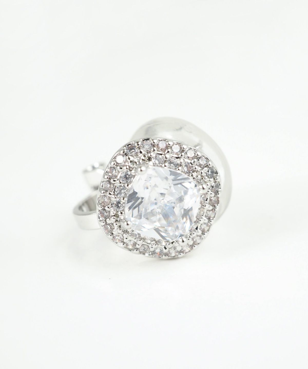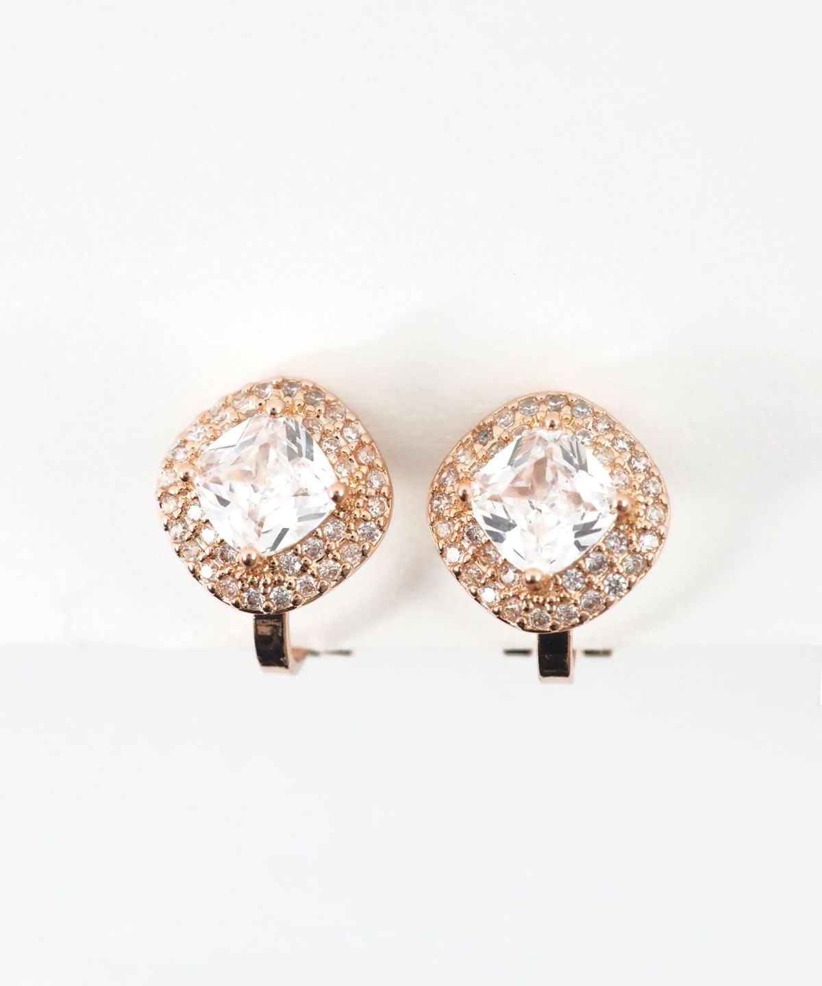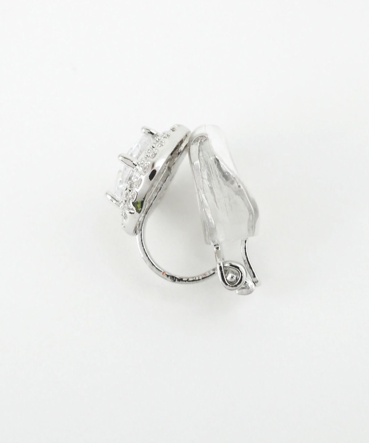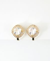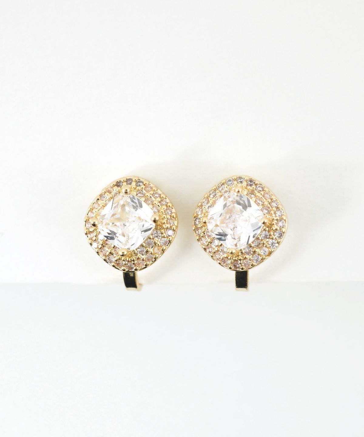 クラシックなスクエアフォルムが今っぽい、上品で華やかなクリップイヤリング。光を受けるたびに多方向に煌めき、お顔周りをパッと明るく華やかに演出します。派手すぎず上品なサイズ感なので、オフィススタイルからオケージョンシーンまで、幅広く活躍するアイテムです。