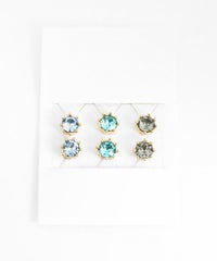 きらりと光るカラービジューの一粒石イヤリング。多面カットが光を反射し、お顔周りをパッと華やかな印象に見せてくれます。