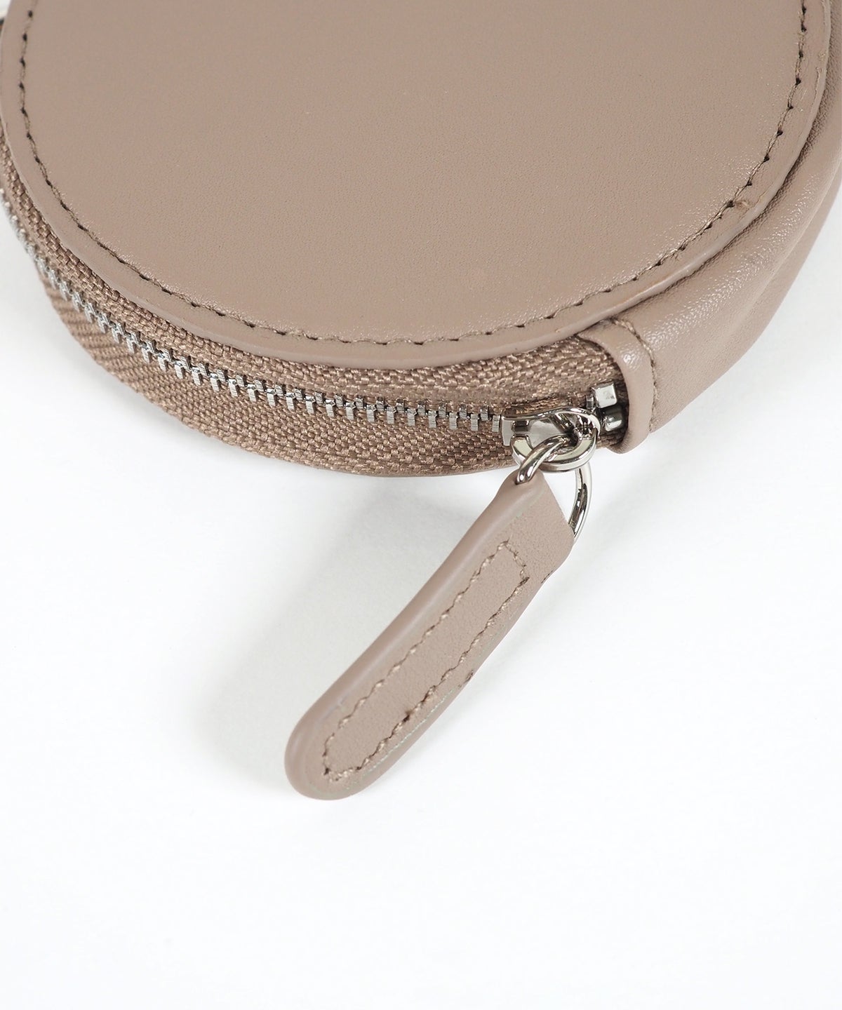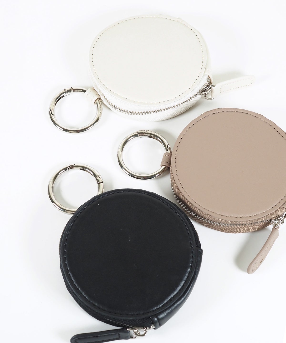ベーシックで飽きのこないラウンド型のチャームポーチ。手のひらに収まるコンパクトなサイズ感ながら、リップや目薬、アクセサリーなどの必需品をスマートに収納できます。便利なカラビナ型のキーリング付きで、バッグの持ち手に取り付けてアクセントとしても。ミニマルなデザインなので、どんなバッグとも相性抜群です。