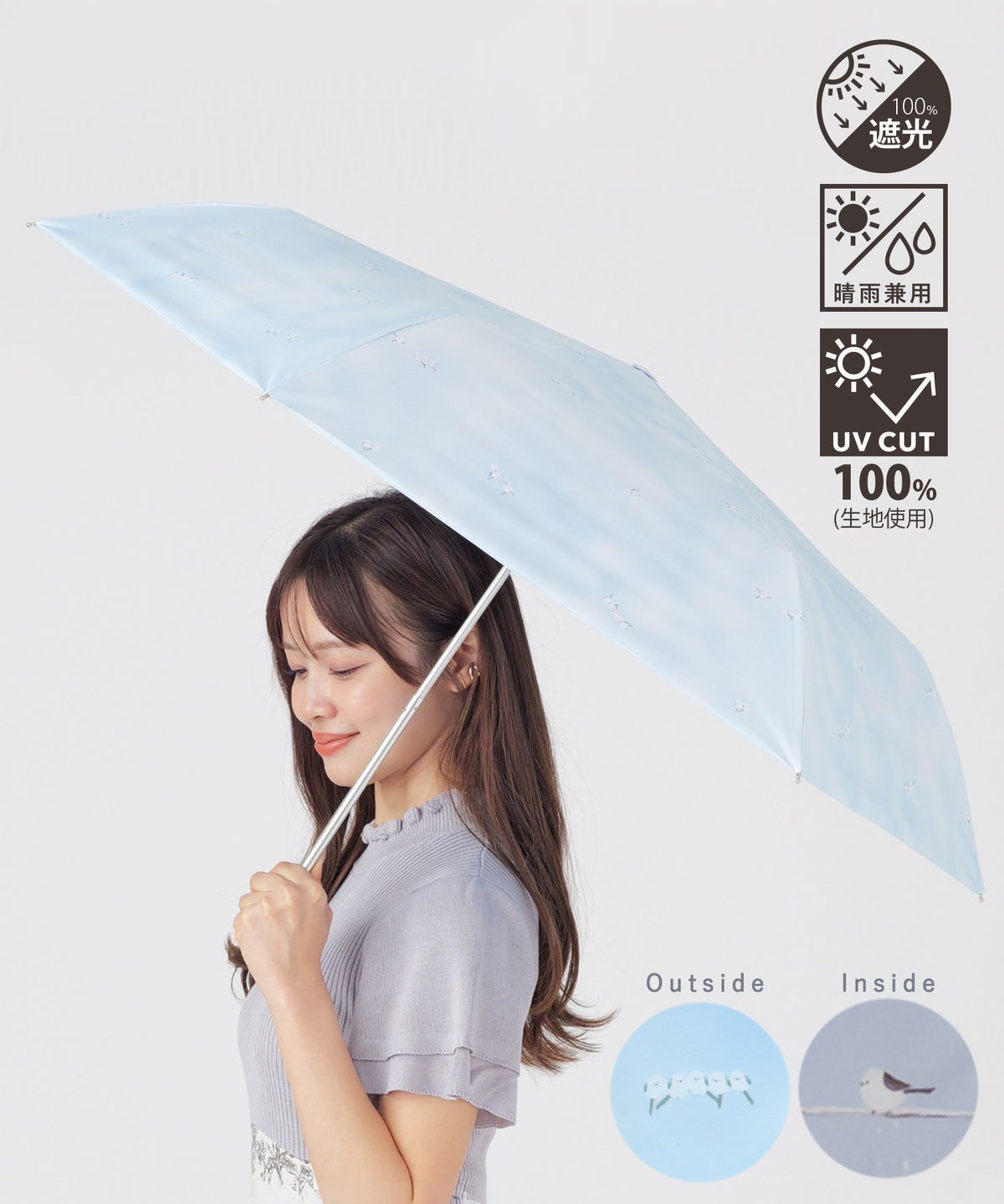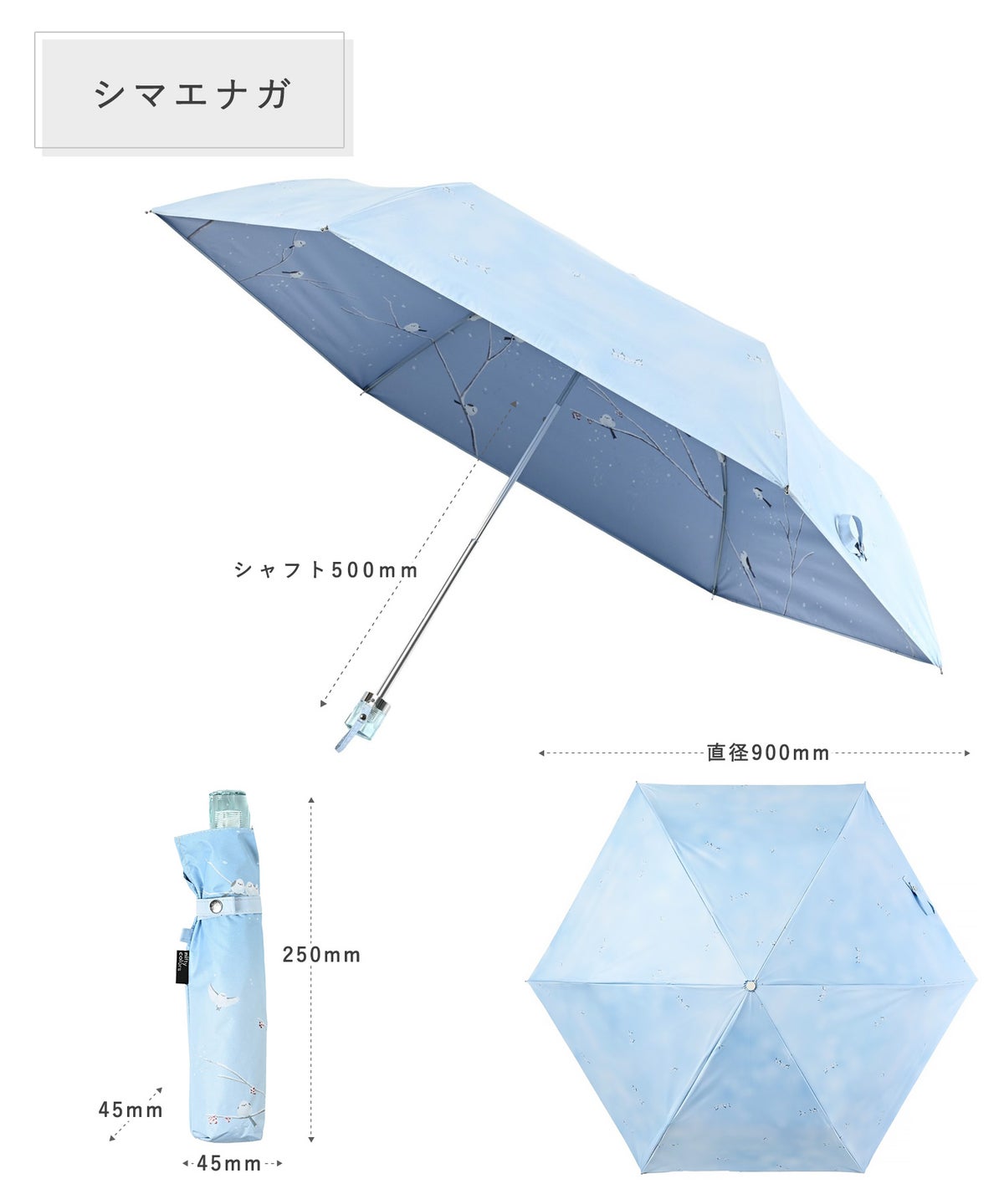 遮光2サイド シマエナガミニ折りたたみ晴雨兼用日傘