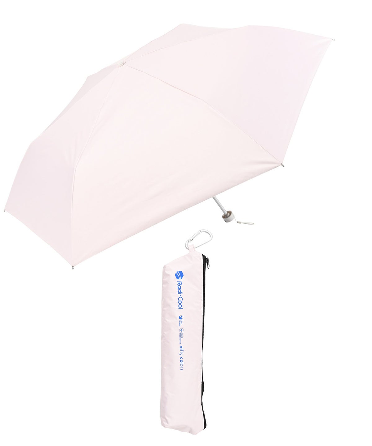 ケースはファスナーで大きく開閉できるペンケース型を採用。傘の出し入れがスムーズでカラビナを使ってバッグに取り付けることも可能です。