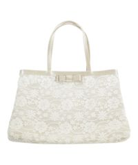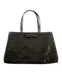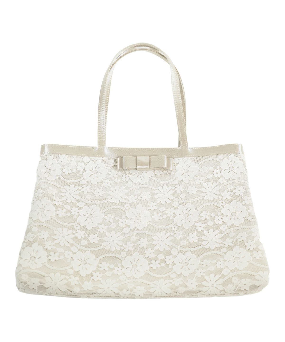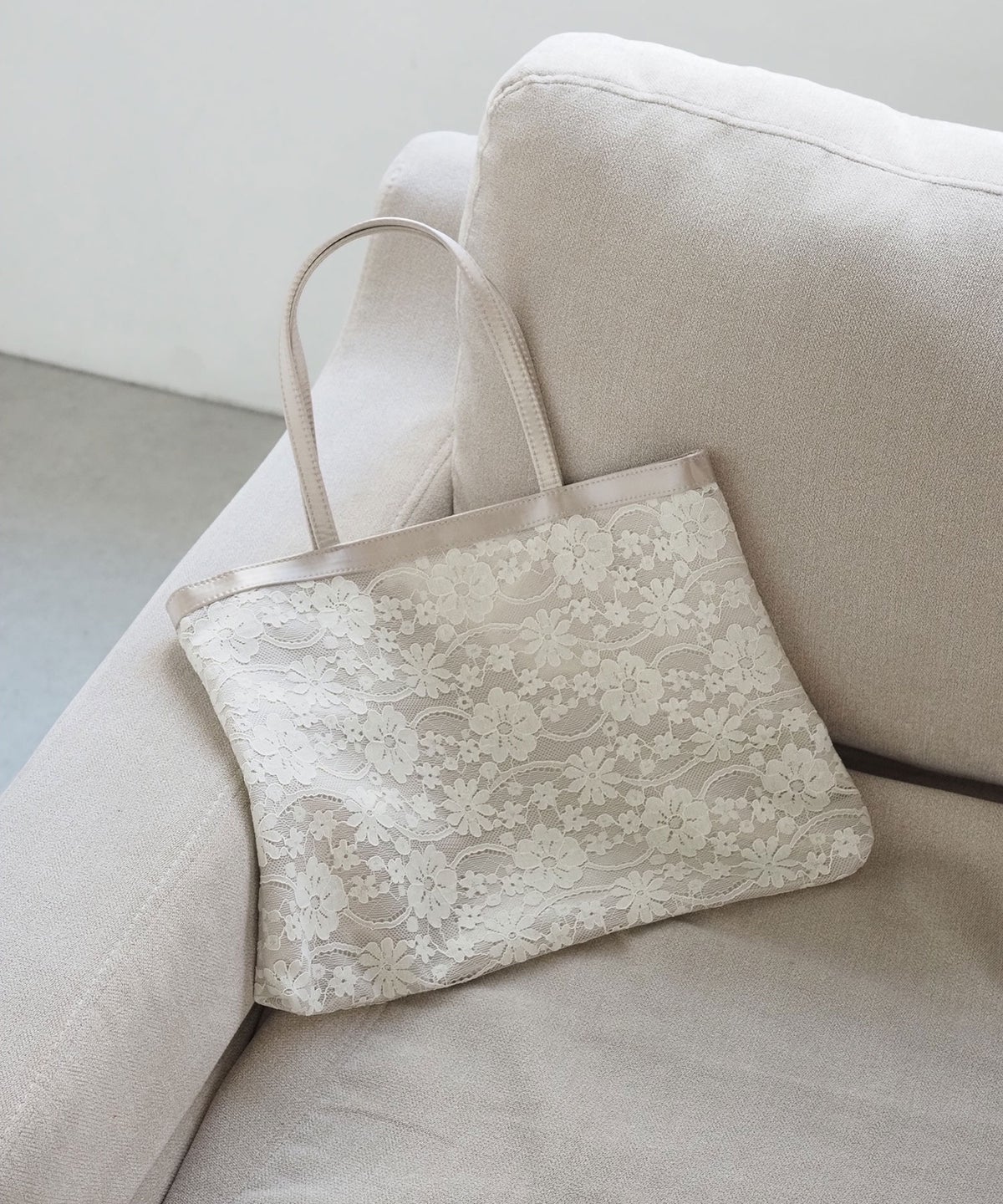 サテン生地の上にレースデザインあわせられ、上品な印象を与えてくれるサブバッグ。