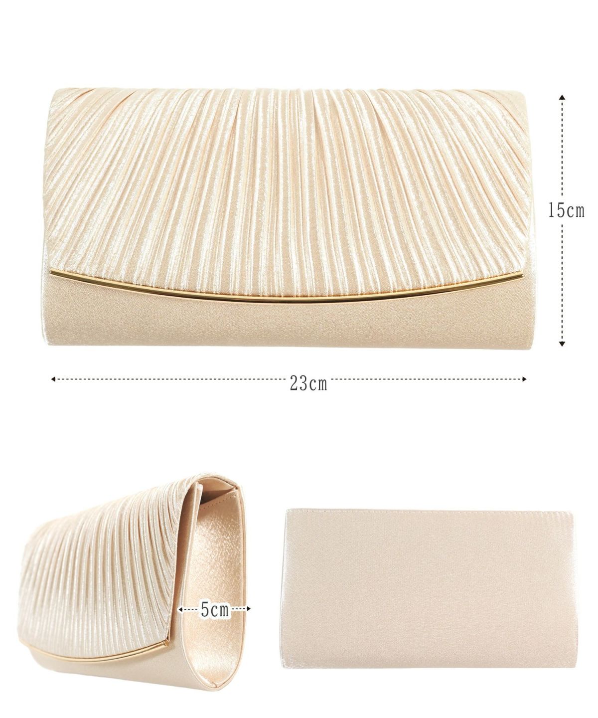 丸みのあるフォルムに、上品なサテンプリーツをメタルフレームで洗練されたパーティーバッグ。
