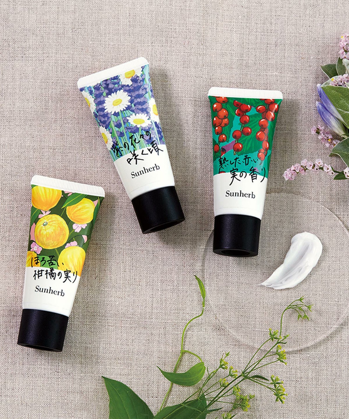 陽だまりの中で見つけた果実や植物を思わせる、心地よい香りとうるおいで手肌を包み込むハンドクリーム。