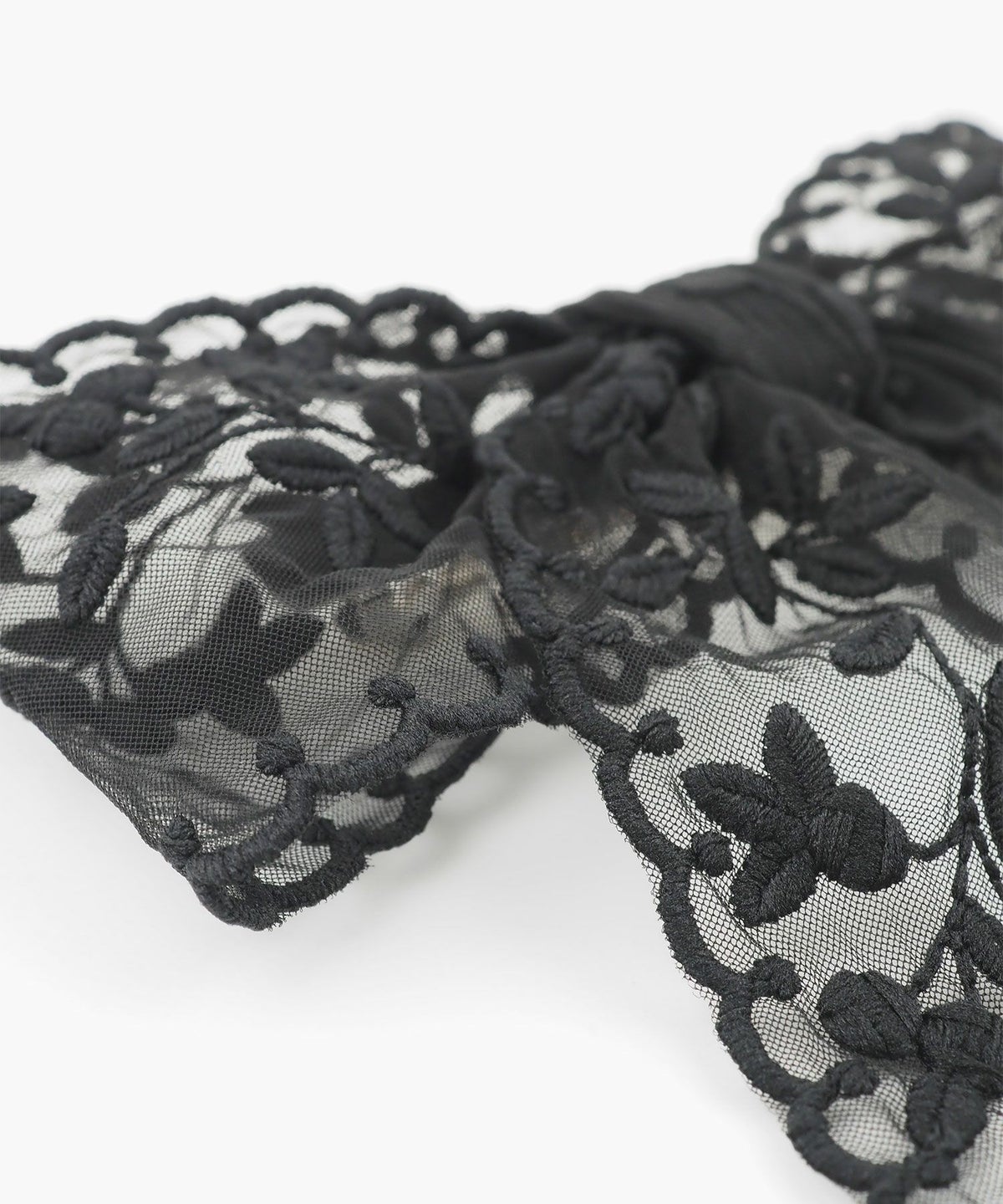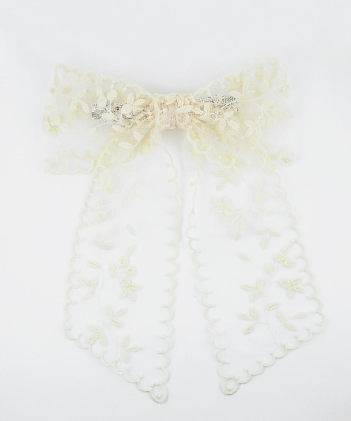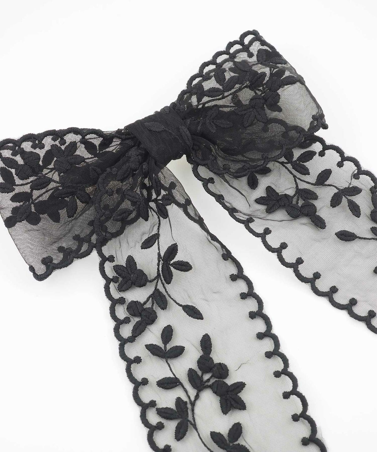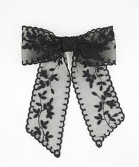 繊細なフラワー刺繍を施したチュールレースを贅沢に使用した、大人可愛い雰囲気のリボンバレッタ。 透け感のあるシアー素材なので、ボリューム感がありながらも重くならず、軽やかで上品な印象を与えてくれます。