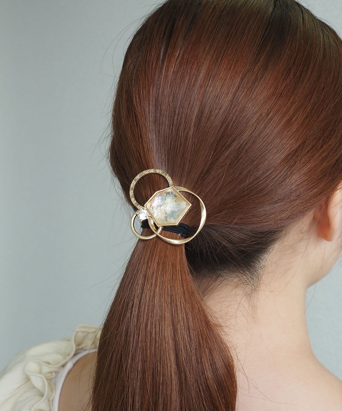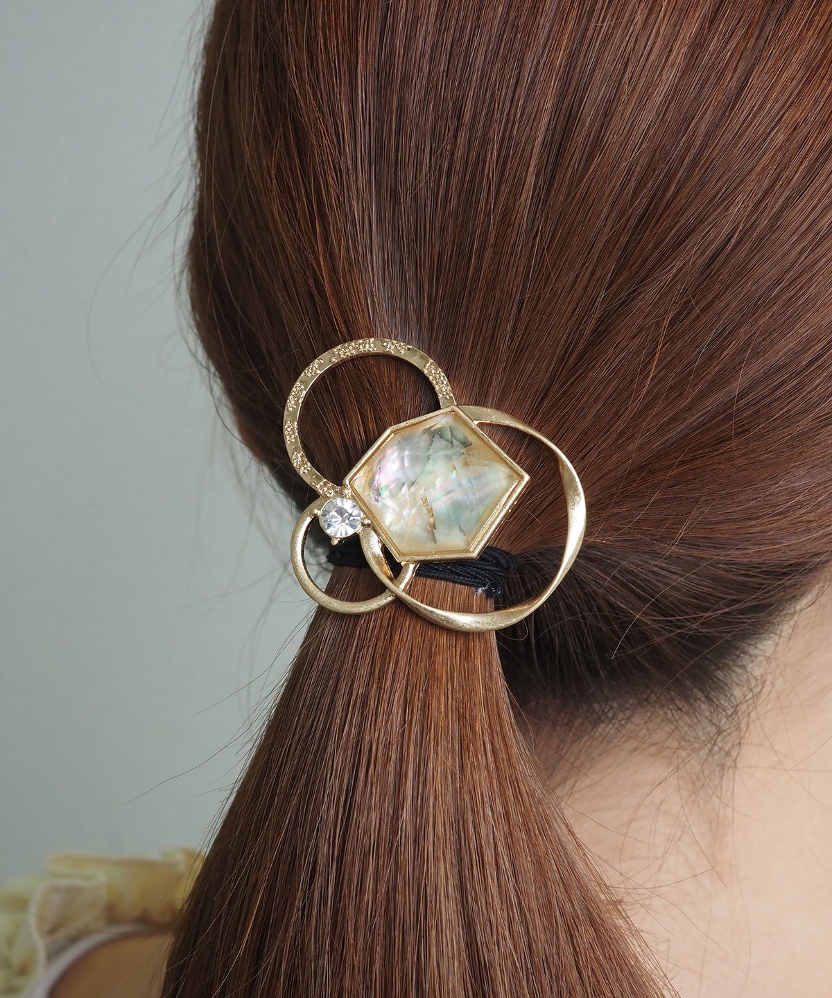 クリスタルに閉じ込めたシェルが光に合わせて優しく煌めくポニーフック。髪を束ねたヘアゴムの結び目に差し込むだけでアクセントに。幅広いコーディネートに対応、デイリー使いにも重宝します。
