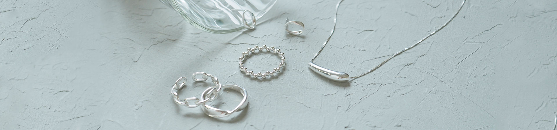 シルバー(silver925)シルバージュエリー(silver925)の商品一覧です。銀の純度は92.5%。柔らかくてジュエリーに不向きな純銀より強度を高めつつ、スタイリッシュなシルバー本来の良さを失わない絶妙なバランスを持つ素材です。デザインの幅が広くカジュアルに着けられるため、幅広い年代に人気があります。MUK ONLINE SHOP(エムユーケーオンラインショップ)ではトレンド・新作シルバージュエリーを、お好きな時間にお好きな場所でお買い物をお楽しみいただけます。 -