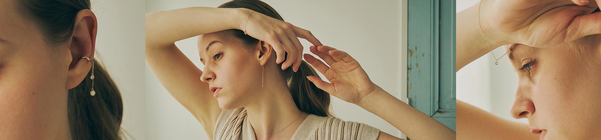 10金(k10)10金ジュエリーの商品一覧です。金の純度は42%。柔らかくてジュエリーに不向きな純金(24金)に比べ硬度が高いため傷付きにくく、線の細い華奢なデザインや様々な色調を楽しめる特性があります。高品質なうえに安心して身に着けていただける、普段使いに向いているファッション性の高いライトジュエリーです。K10刻印入り。MUK ONLINE SHOP(エムユーケーオンラインショップ)ではトレンド・新作10金ジュエリーを、お好きな時間にお好きな場所でお買い物をお楽しみいただけます。 -