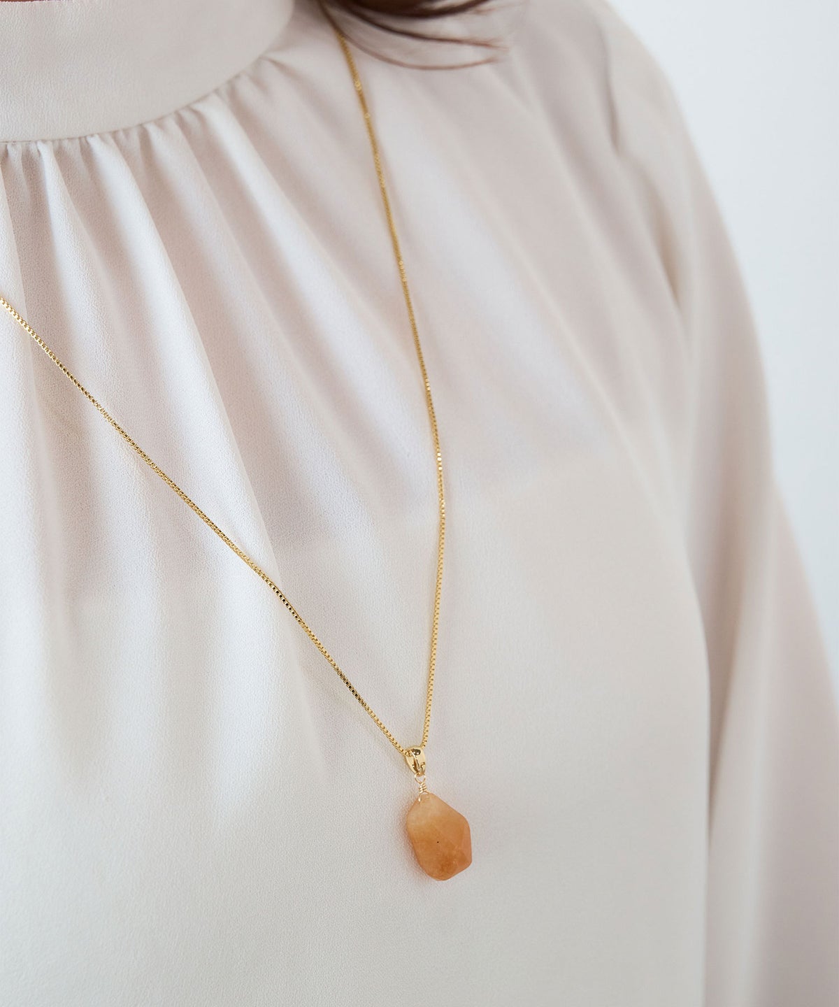 天然石の魅力を最大限に引き出す、一粒タイプのネックレスです。 華奢なチェーンが石の輝きを際立たせ、デコルテを美しく彩ります。主張しすぎないデザインで、Tシャツなどのカジュアルなスタイルから、オフィスでのきれいめスタイルまで幅広く活躍します。