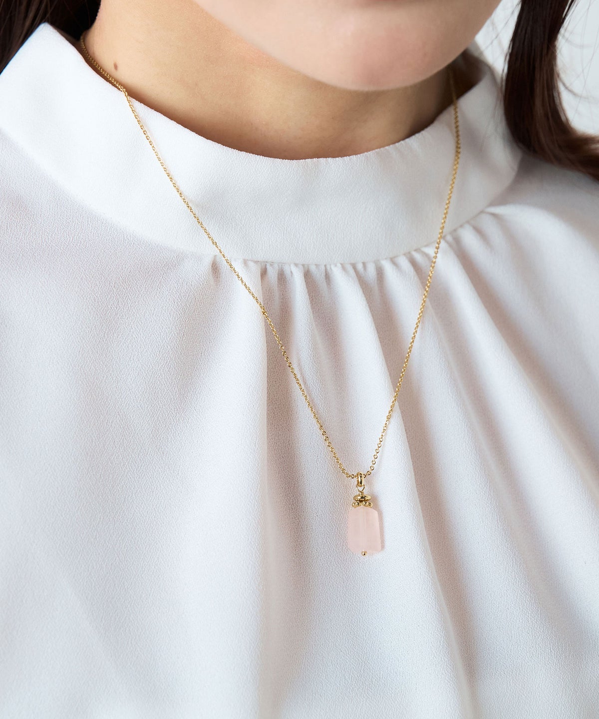 天然石の魅力を最大限に引き出す、一粒タイプのネックレスです。 華奢なチェーンが石の輝きを際立たせ、デコルテを美しく彩ります。主張しすぎないデザインで、Tシャツなどのカジュアルなスタイルから、オフィスでのきれいめスタイルまで幅広く活躍します。