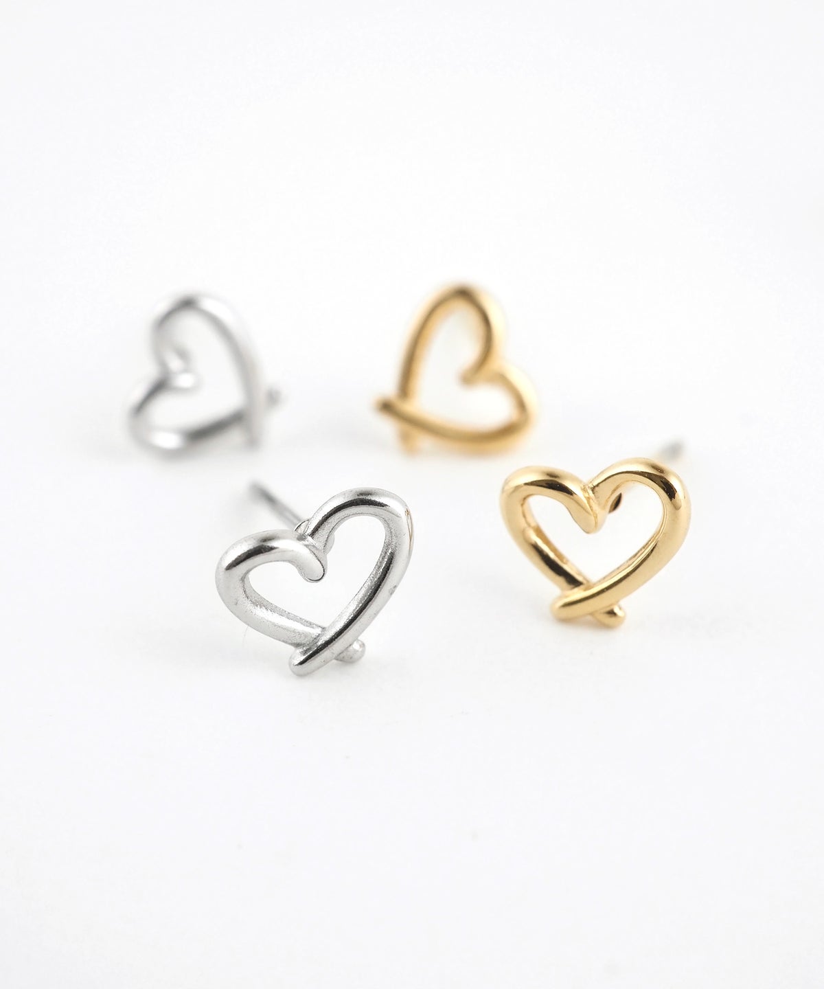 ハートモチーフを、メタルの質感でスタイリッシュに仕上げたミニピアス。小ぶりながらもぷっくりとした立体感があり、耳元に程よい抜け感とアクセントをプラスします。素材には金属アレルギー対応のステンレスを採用。水や汗に強く、錆びや変色も少ないため、長く愛用して頂けるアクセサリーです。ペアピアス(両耳用)です。