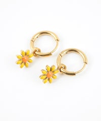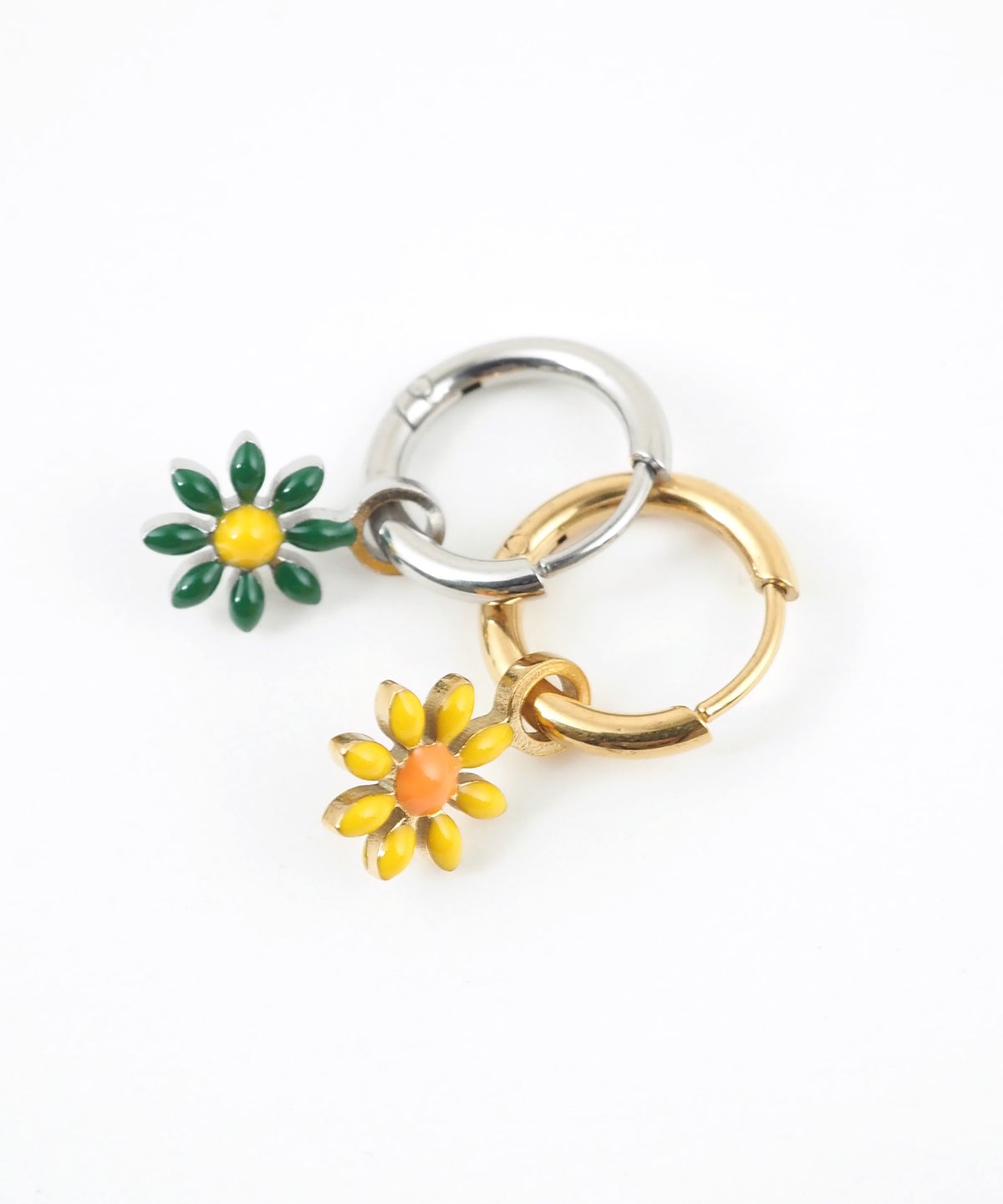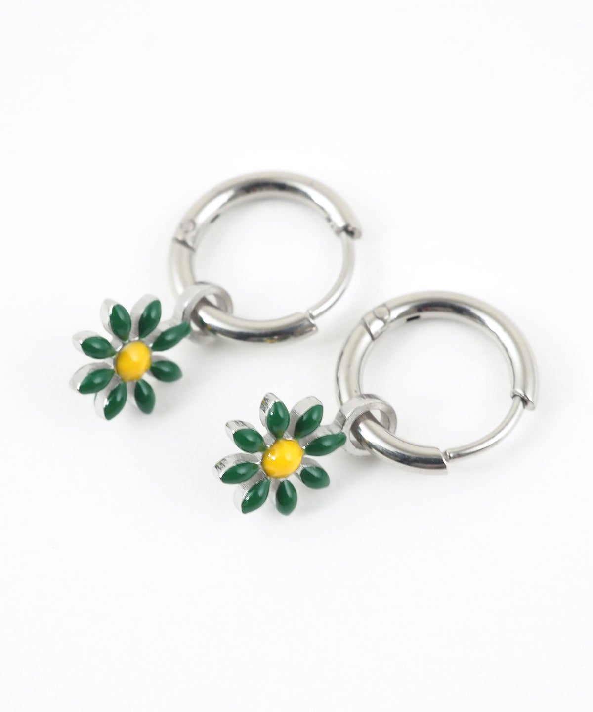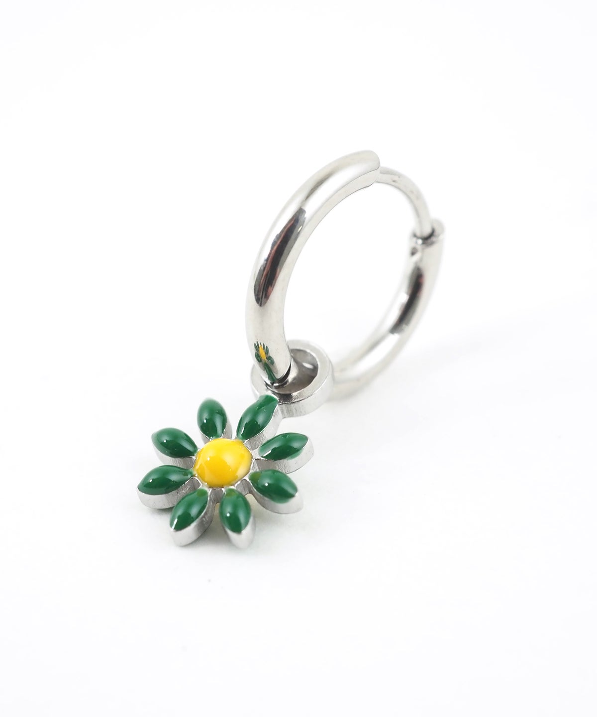 パッと目を引くフラワーモチーフが、お顔周りを華やかに彩るステンレスピアス。 素材には金属アレルギー対応のステンレスを採用。水や汗に強く、錆びや変色も少ないため、長く愛用して頂けるアクセサリーです。ペアピアス(両耳用)です。