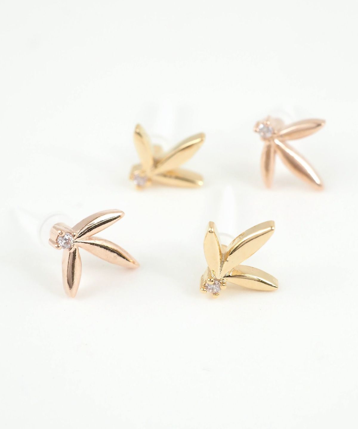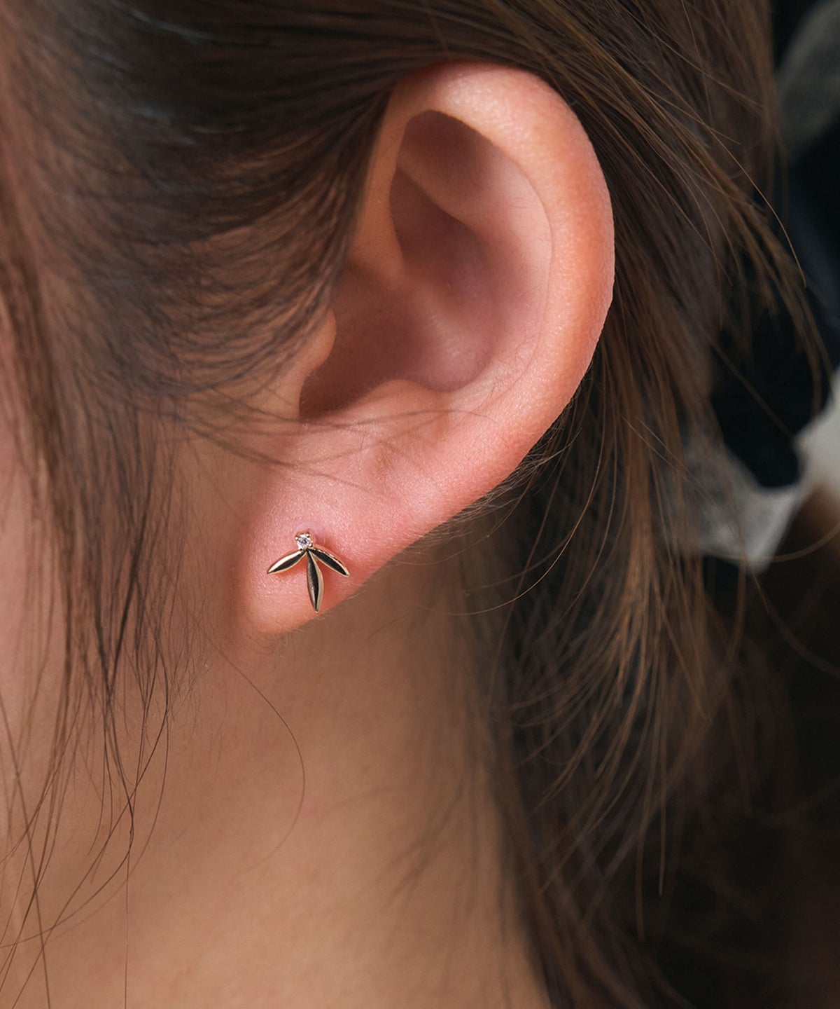 繊細に広がる3枚のリーフが、耳元に華やかさと動きをプラスしてくれるデザインのセラミックポストピアス。中央に配した一粒のクリアビジューが、光を受けるたびにさりげなく煌めきます。肌に優しい非金属のセラミックポストは、傷つきにくく耐久性・衛生面にも優れているのが魅力。ペアピアス(両耳用)です。