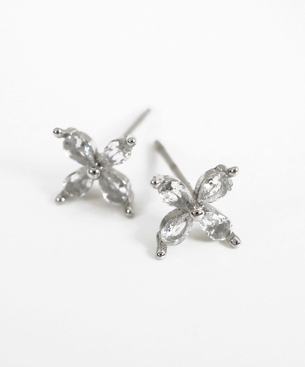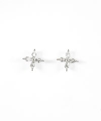 キュービックジルコニアをあしらった、上品に煌めくクロスフラワーモチーフのステンレスピアス。錆びにくく傷つきにくい丈夫なステンレス素材なので、デイリー使いでも輝きが長持ちします。ペアピアス(両耳用)です。