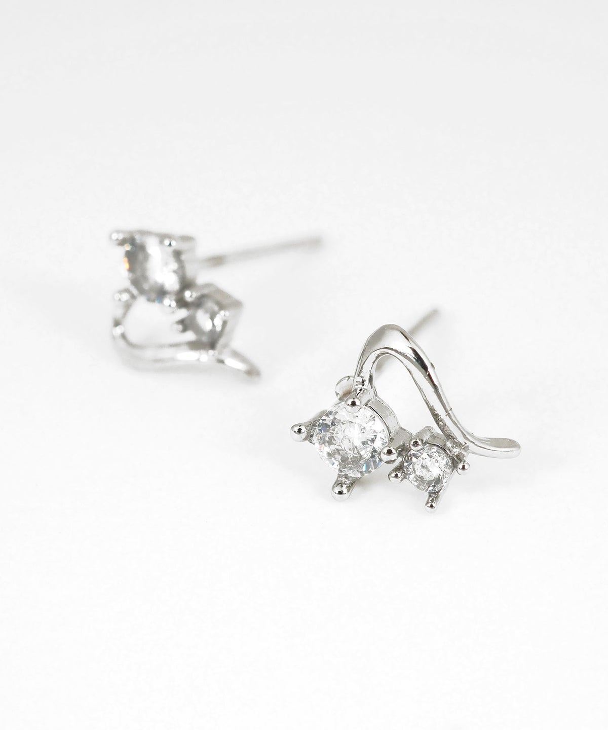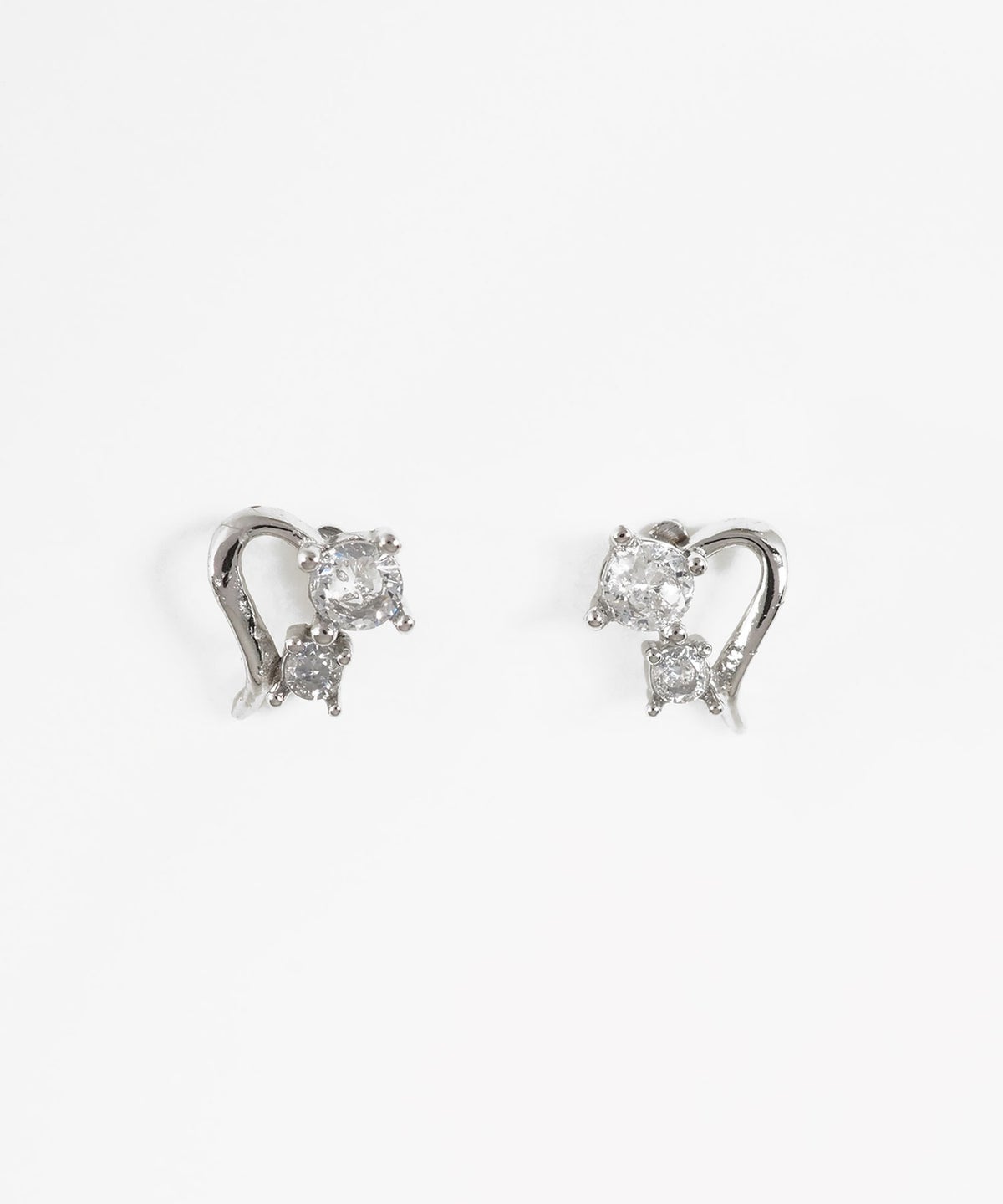 流れるようなハートのラインに、2粒のキュービックジルコニアを添えた上品なステンレスピアス。錆びにくく傷つきにくい丈夫なステンレス素材なので、デイリー使いでも輝きが長持ちします。ペアピアス(両耳用)です。