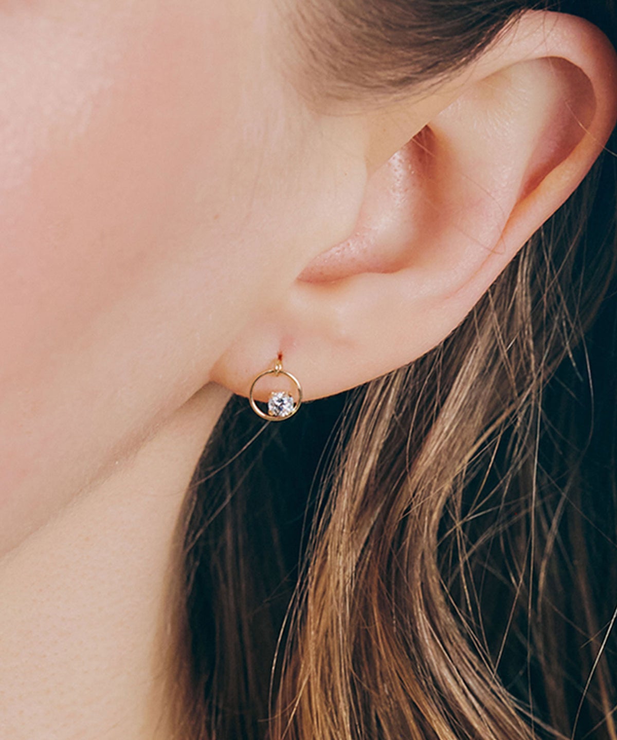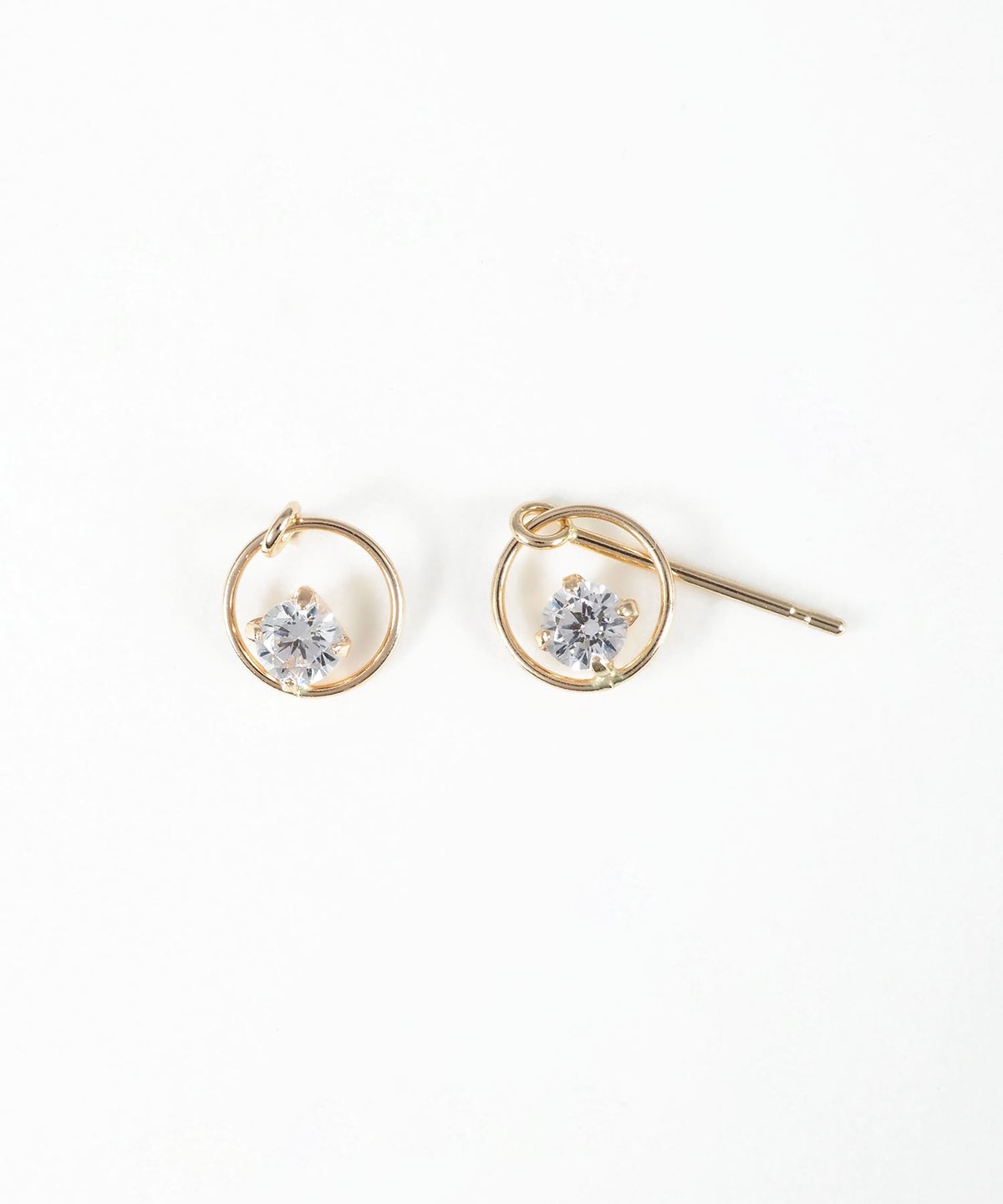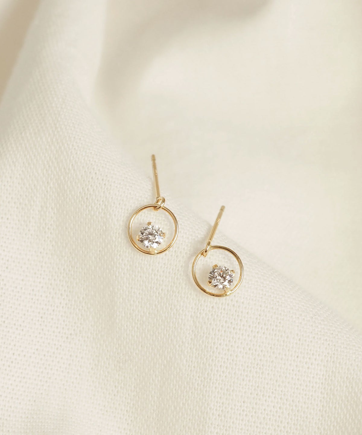 ダイヤモンドに匹敵するほどの光の屈折を持つため"人工ダイヤ"とも呼ばれるキュービックジルコニアのピアス。極細のサークルに一粒の光を浮かべたミニマルな造形は、計算された無駄のない空間美を宿し、纏うだけで大人の洗練された雰囲気に。ゆらゆら揺れてきらめきます。