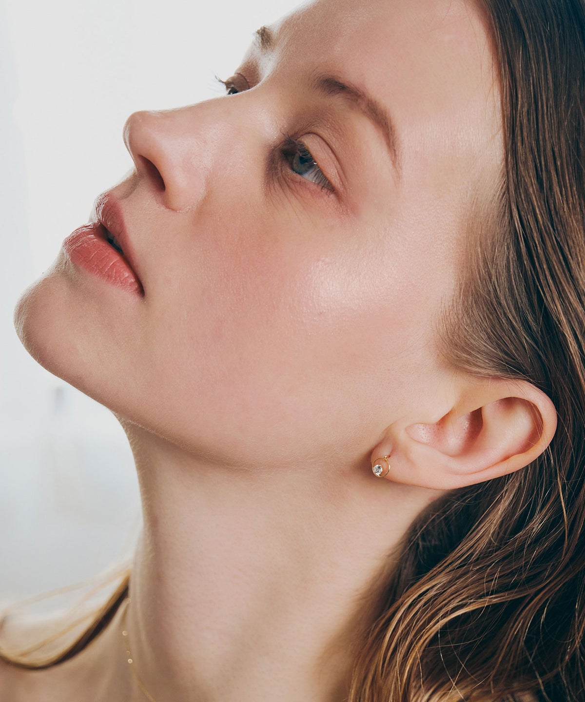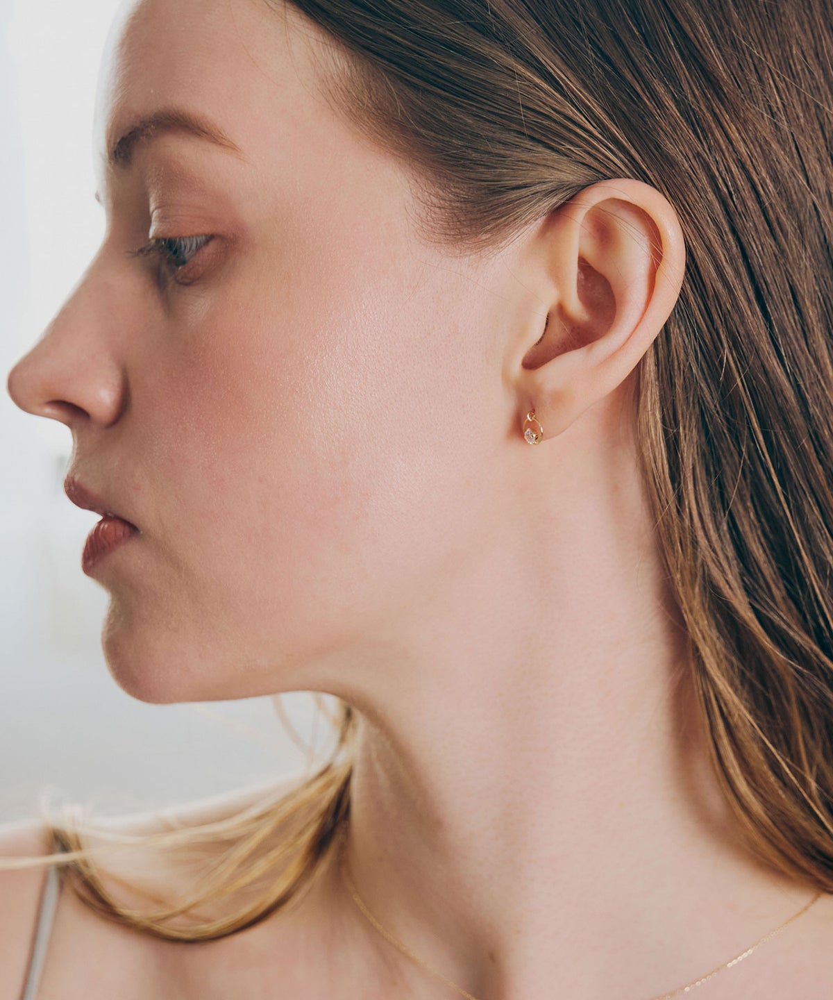 横顔に光の輪を描く、繊細で潔い空間デザイン。高級感がありながらカジュアルに身につけられる10金製で永くご愛用頂けます。
