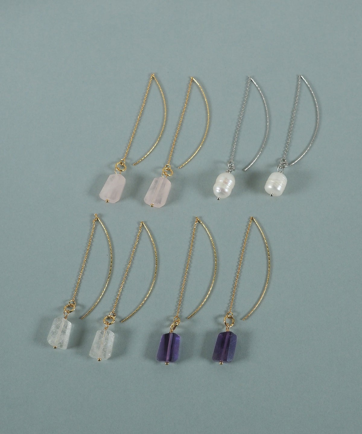 天然石&淡水パール ハーフムーンアメリカンピアス【JUNO PREMIUM】