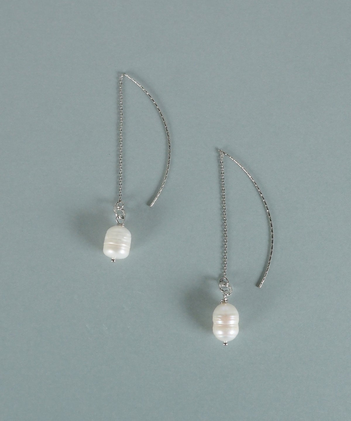 モダンなハーフムーンデザイン、U字型のラインとチェーンを組み合わせた、モダンなデザインのピアスです。 装着すると、動くたびに軽やかに揺れ、顔周りに洗練された印象を与えます。