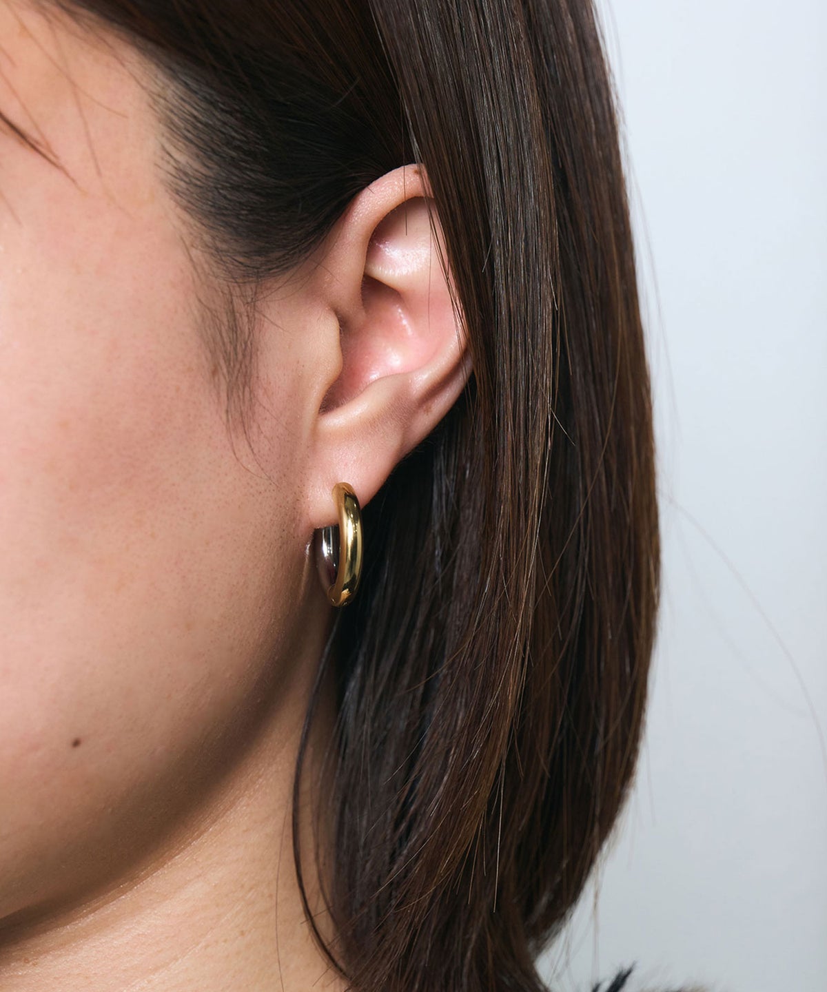 キャッチが本体と一体化した、カチッと留めるだけで簡単装着できるワンタッチピアス。程よい厚みのあるシンプルなフォルムが、耳元に洗練された存在感を与えます。滑らかで上品な光沢はオンオフ問わず幅広いシーンで活躍し、飽きのこないデザインで長く愛用できるアイテムです。錆びにくく変色しにくいステンレス製なので、お手入れが簡単なのも嬉しいポイントです。ペアピアス(両耳用)です。