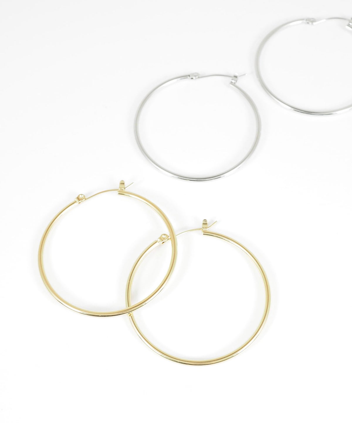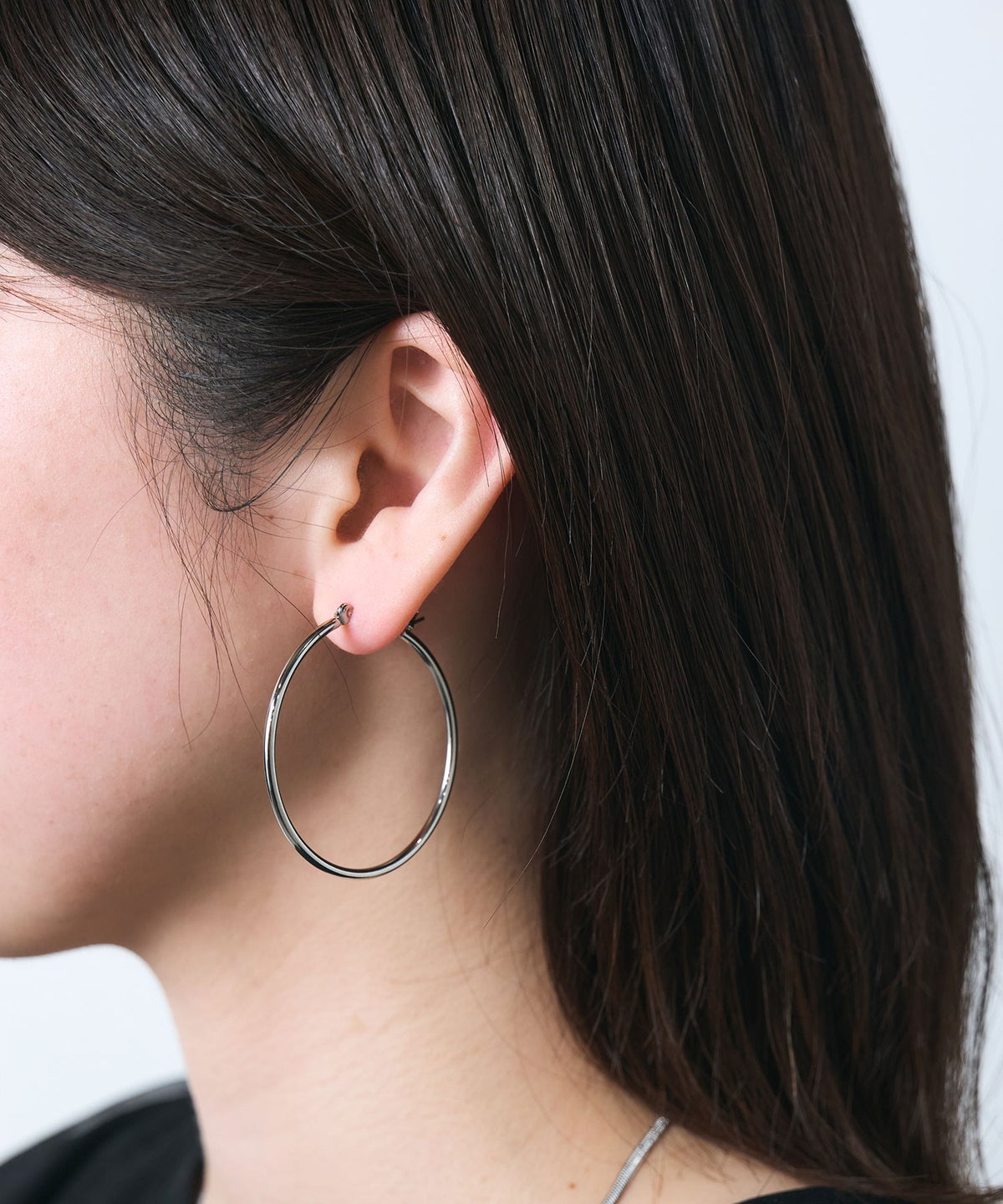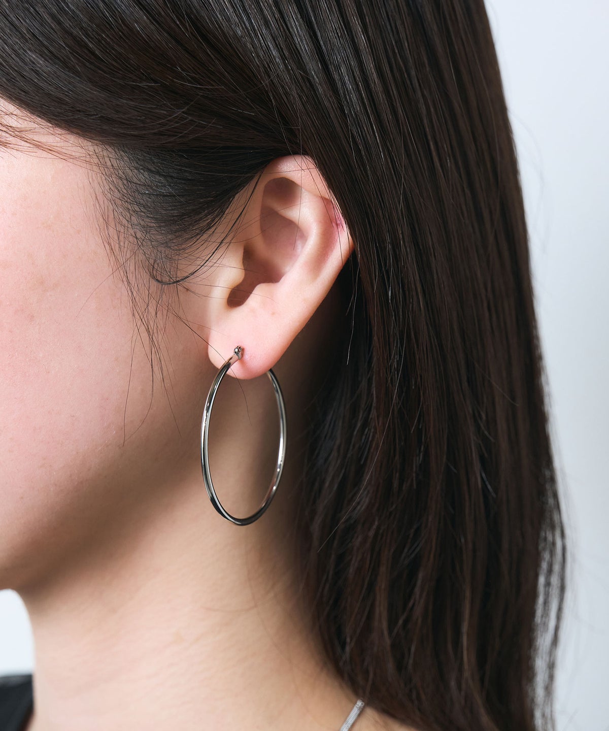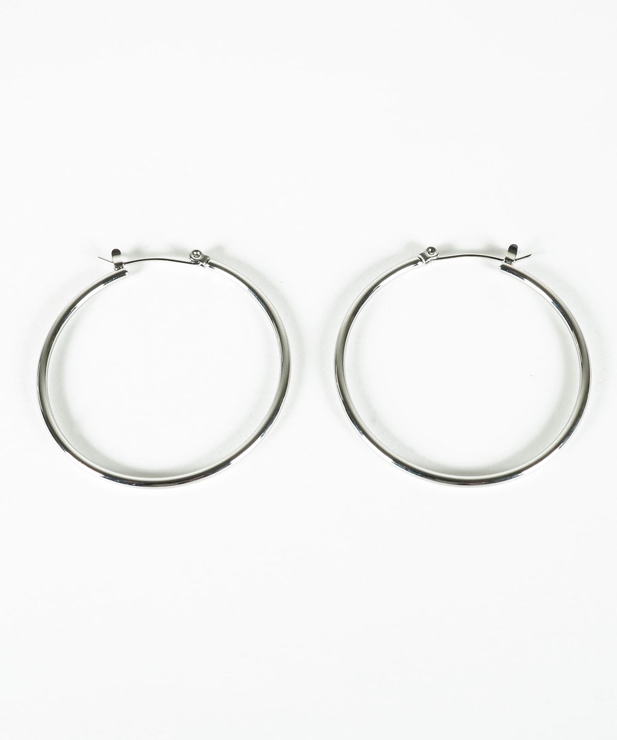 無駄のないシンプルなデザインのフープピアス。存在感のあるサイズ感で、華奢で繊細なラインが耳元にすっきりとした知的な印象を与えます。上品な光沢はオンオフ問わず幅広いシーンで活躍し、飽きのこないフォルムは長く愛用できるアイテムです。錆びにくく変色しにくいステンレス製なので、お手入れが簡単なのも嬉しいポイント。ペアピアス(両耳用)です。