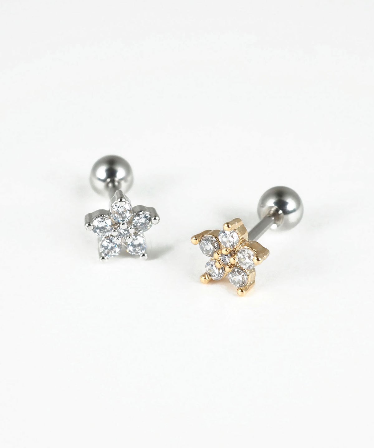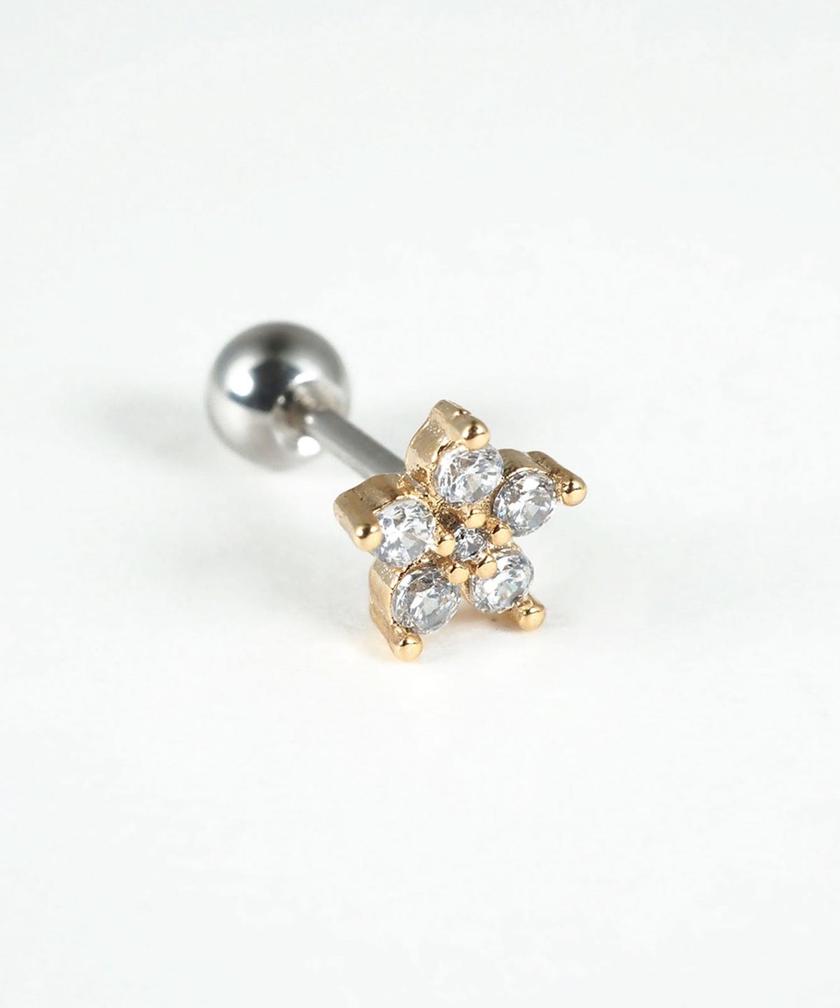 耳元はもちろん、軟骨や唇、眉など、お好みの部位にマルチに使える万能なボディピアス。ジルコニアを敷き詰めたフラワー(花)モチーフが上品な輝きを放ち、どんなスタイルにも自然に馴染みます。医療用サージカルステンレスを使用しているため、変色や錆びに強く、美しい輝きを長くお楽しみいただけます。