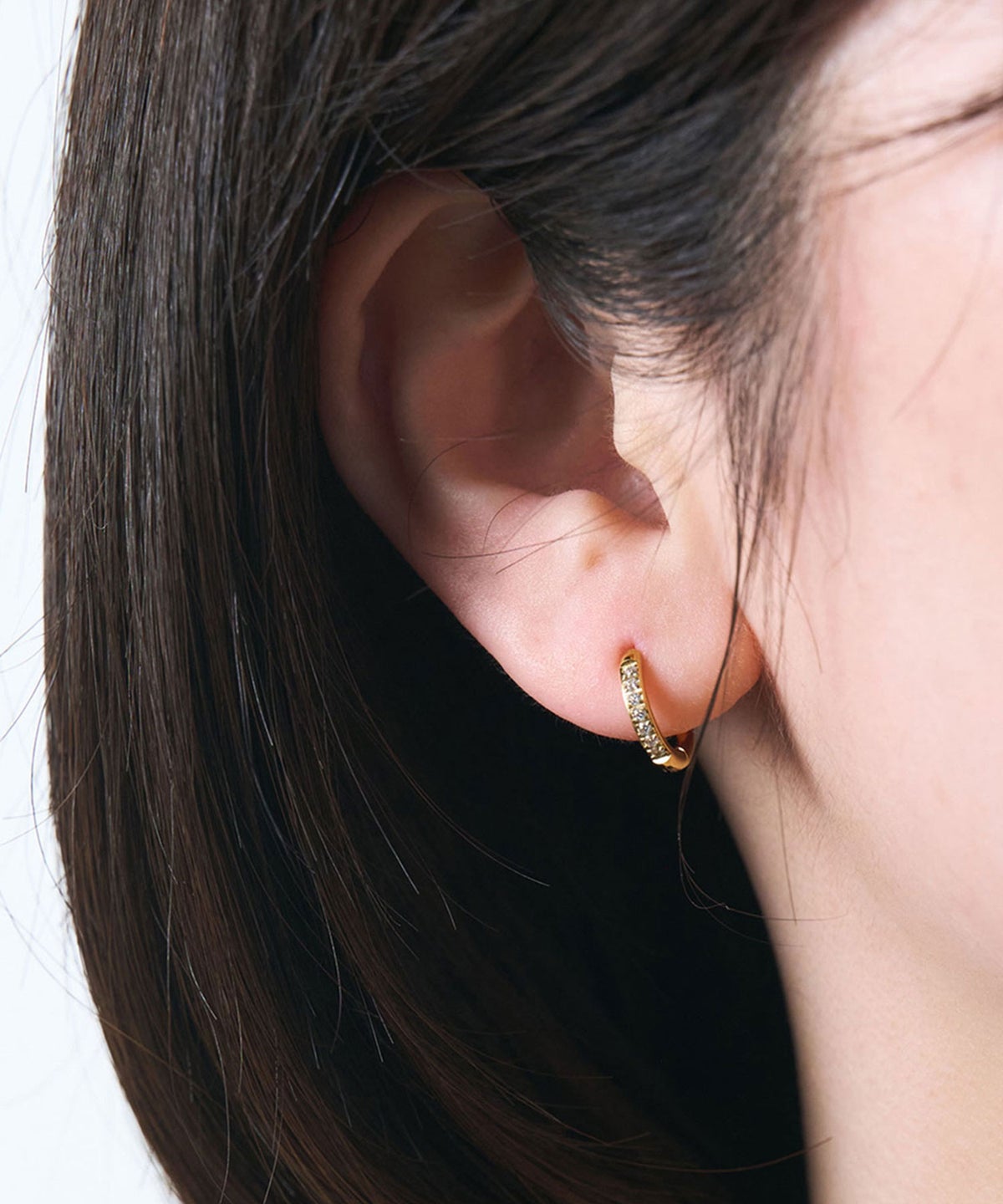 キャッチが本体と一体化した、カチッと留めるだけで簡単装着できるワンタッチピアス。リングの前面に沿って小粒のキュービックジルコニアを贅沢に敷き詰めた、華やかなデザイン。耳たぶに沿うようなミニサイズ感が上品で、洗練された耳元を演出します。オフィスからデイリースタイルまでどんなシーンでも活躍する万能アイテムです。錆びにくく変色しにくいステンレス製なので、お手入れが簡単なのも嬉しいポイントです。ペアピアス(両耳用)です。