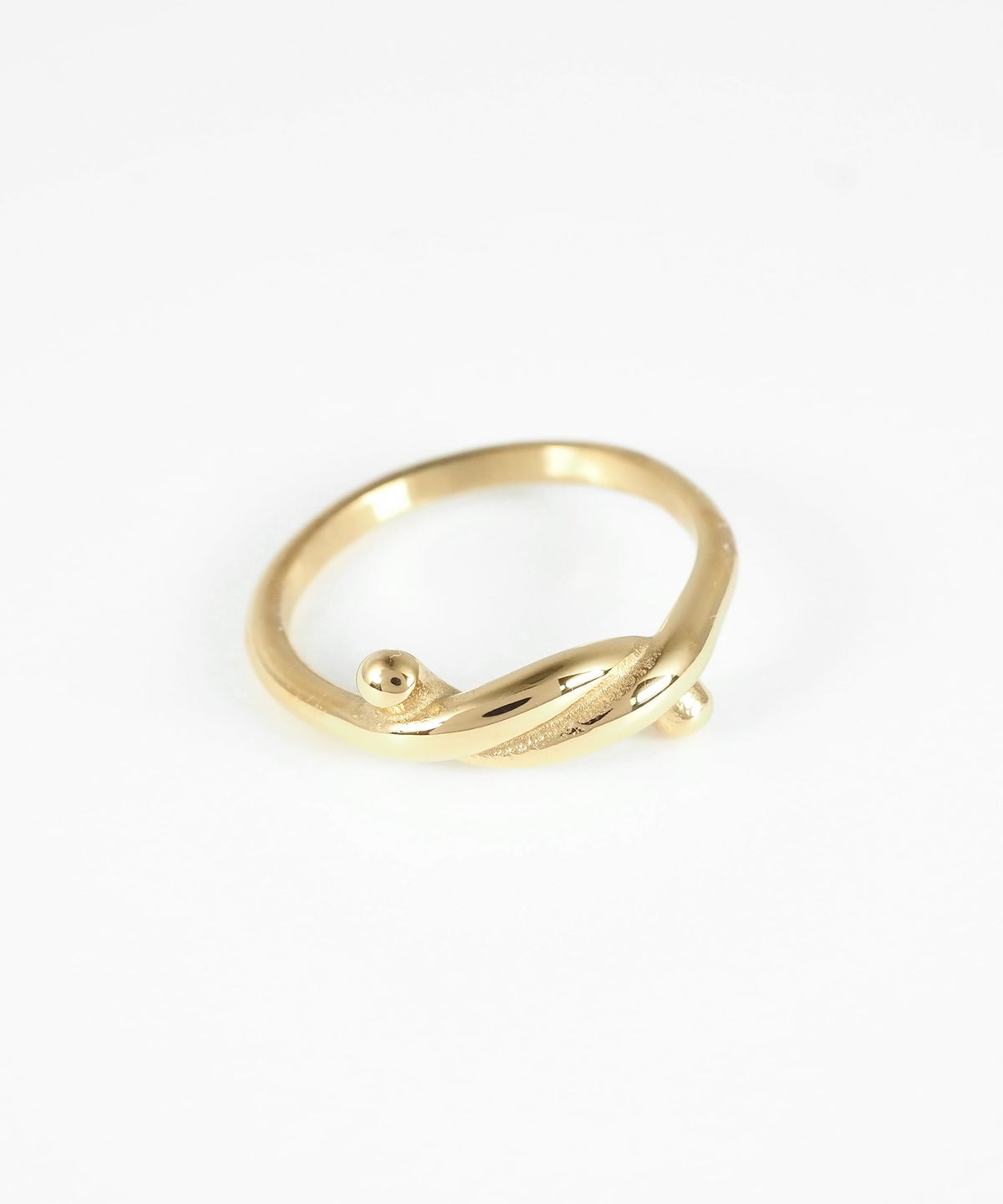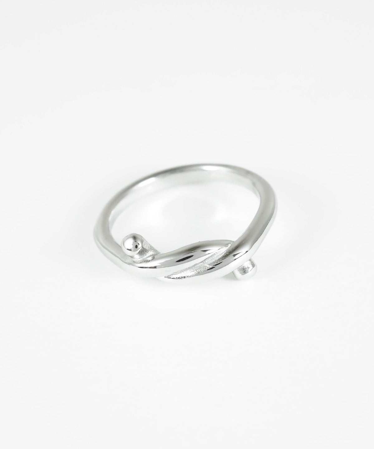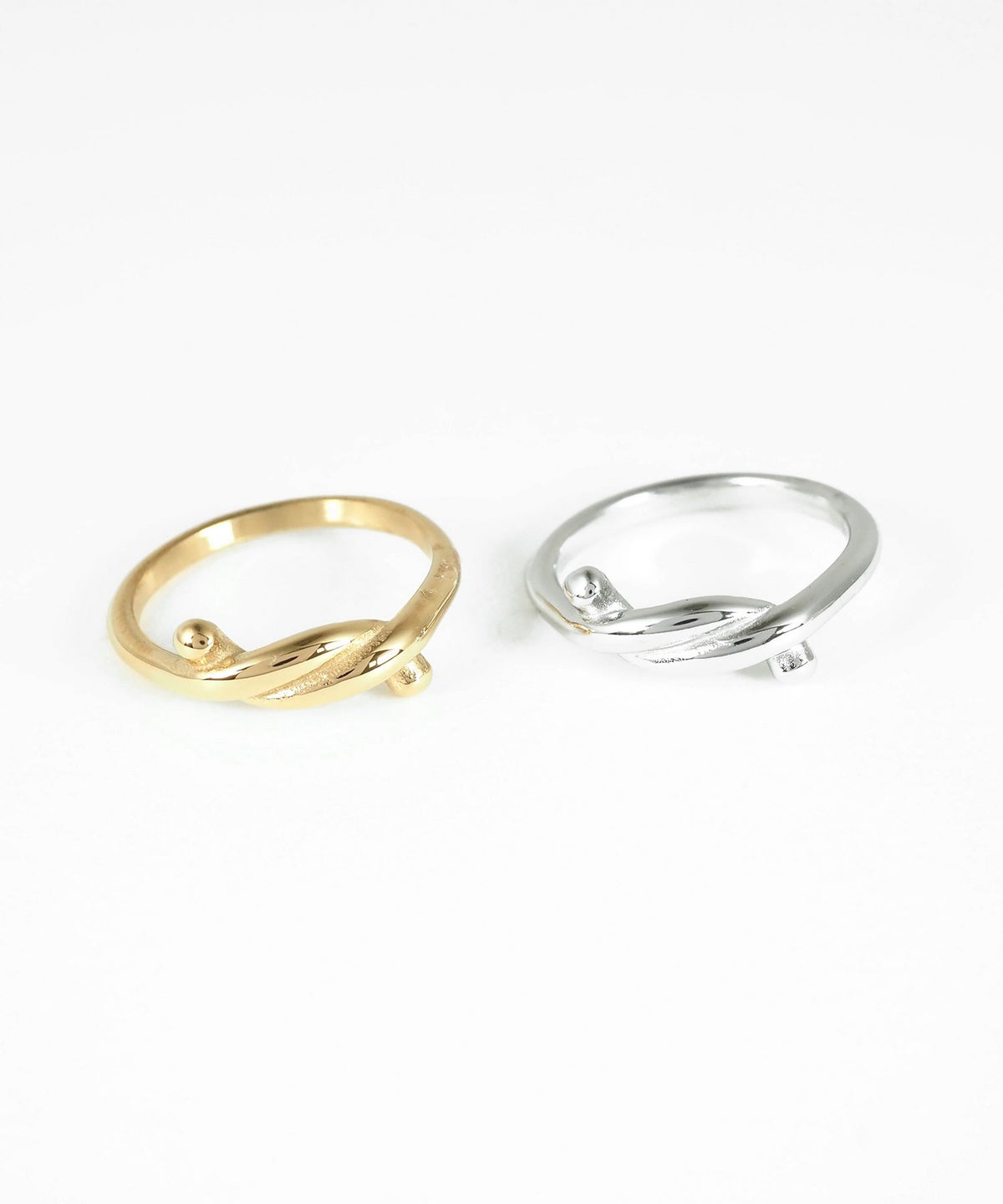金属アレルギーに対応したステンレス素材のリング。緩やかにねじれ、重なり合う2本のラインが立体的なシルエットを描くデザインです。シンプルながらも、程よいボリューム感が魅力。水や汗に強く、錆びにくく変色もしにくいのでお手入れも簡単◎ 硬くて丈夫な素材なので長く愛用して頂けるアクセサリーです。