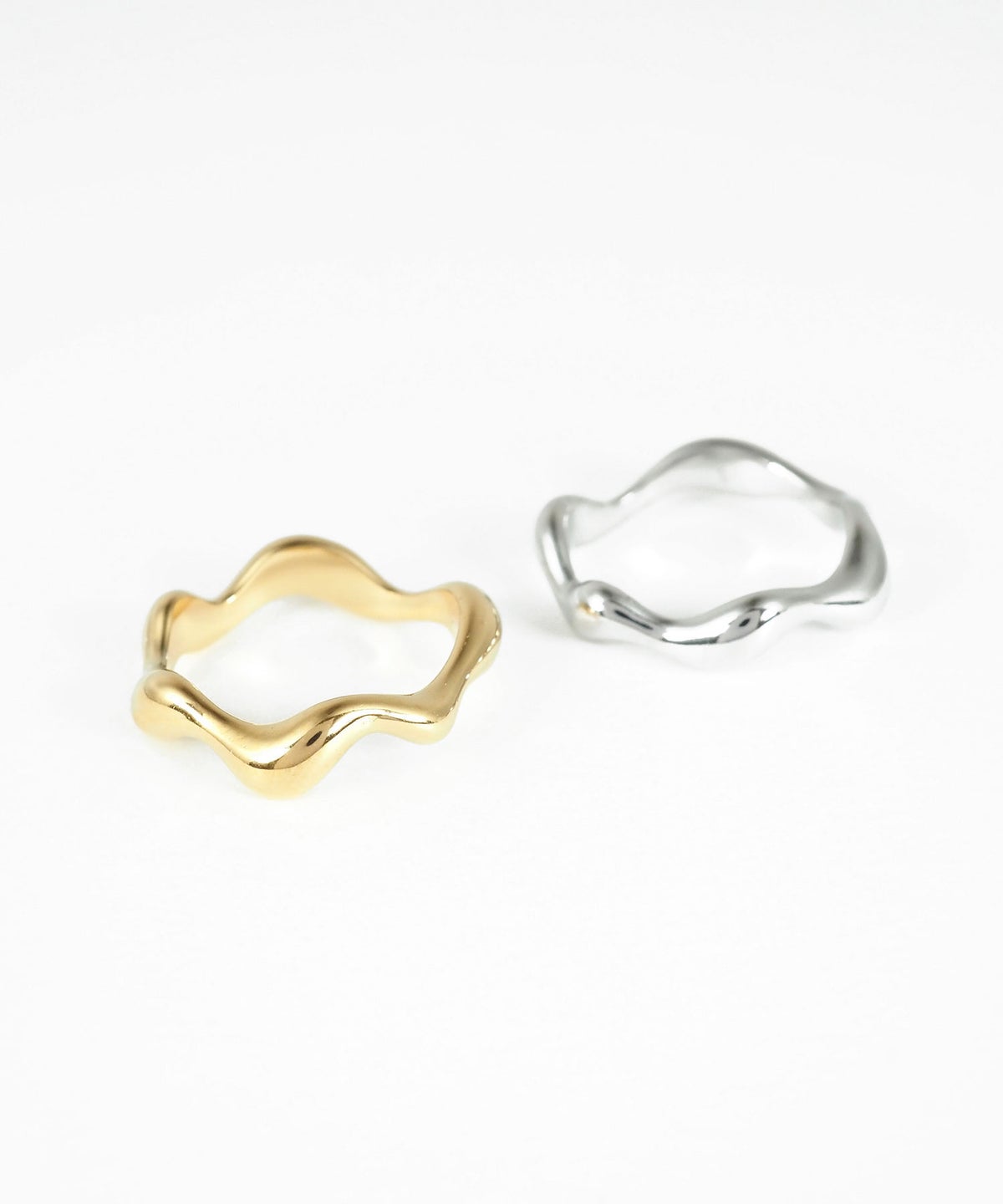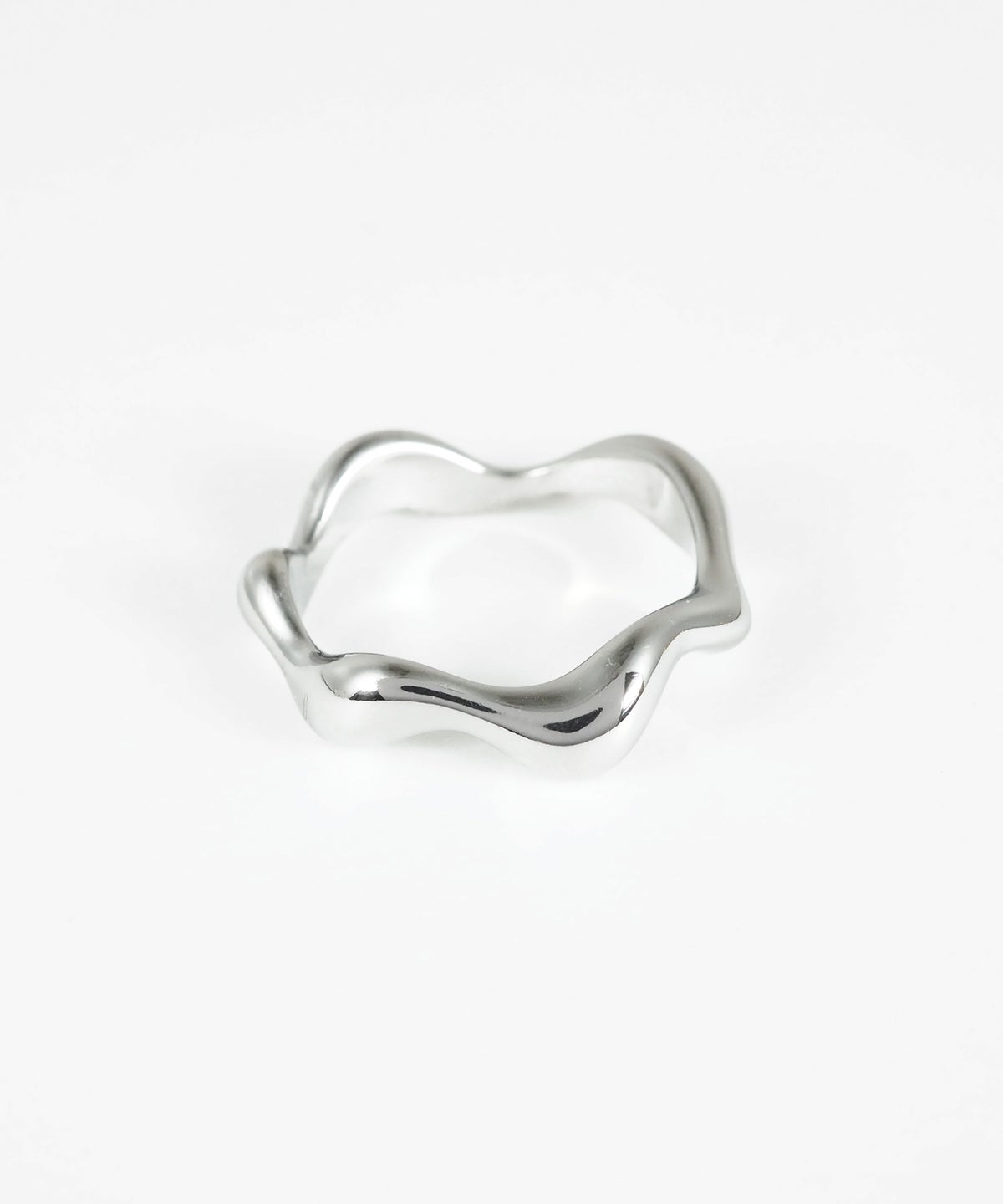 金属アレルギーに対応したステンレス素材のリング。波打つような有機的な曲線が、指先に柔らかなニュアンスを添えるデザインです。他のリングとの重ね付けも楽しめます。水や汗に強く、錆びにくく変色もしにくいのでお手入れも簡単◎ 硬くて丈夫な素材なので長く愛用して頂けるアクセサリーです。