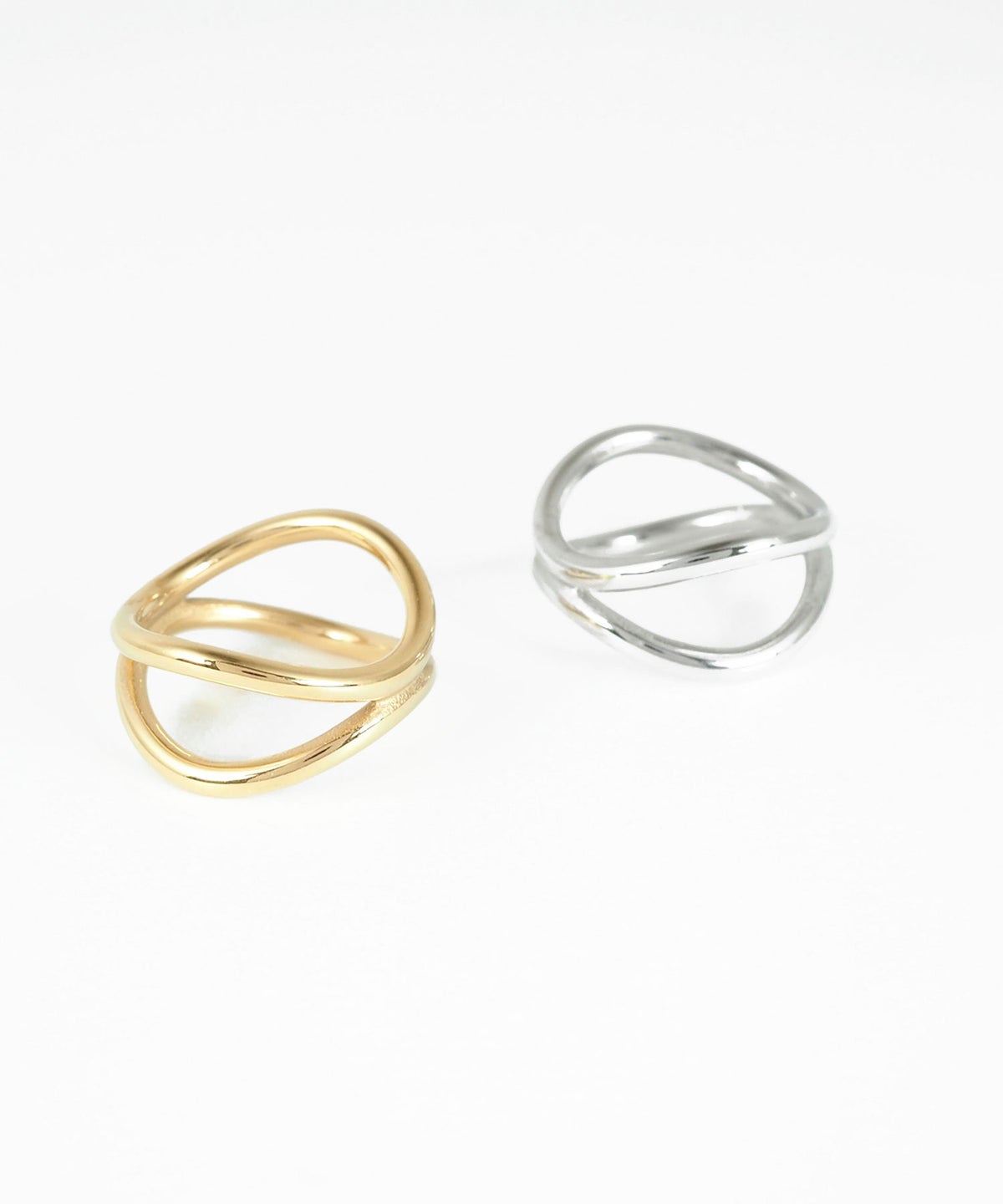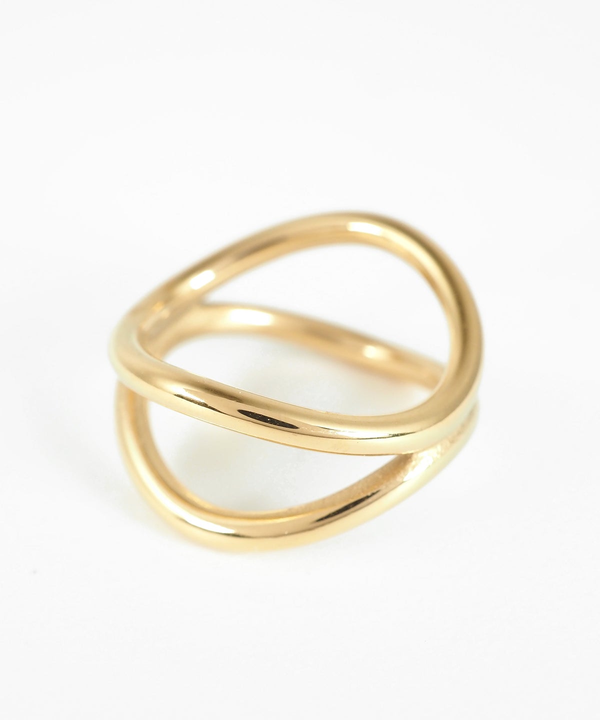 金属アレルギーに対応したステンレス素材のリング。2本の柔らかなラインが重なり、美しい立体感を描き出すデザインです。適度なボリューム感があり、一つで主役級の存在感を放つアイテムです。水や汗に強く、錆びにくく変色もしにくいのでお手入れも簡単◎ 硬くて丈夫な素材なので長く愛用して頂けるアクセサリーです。