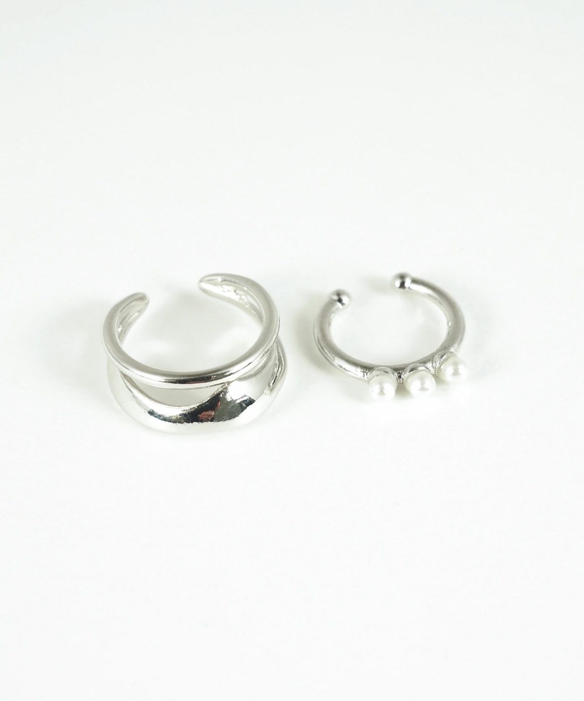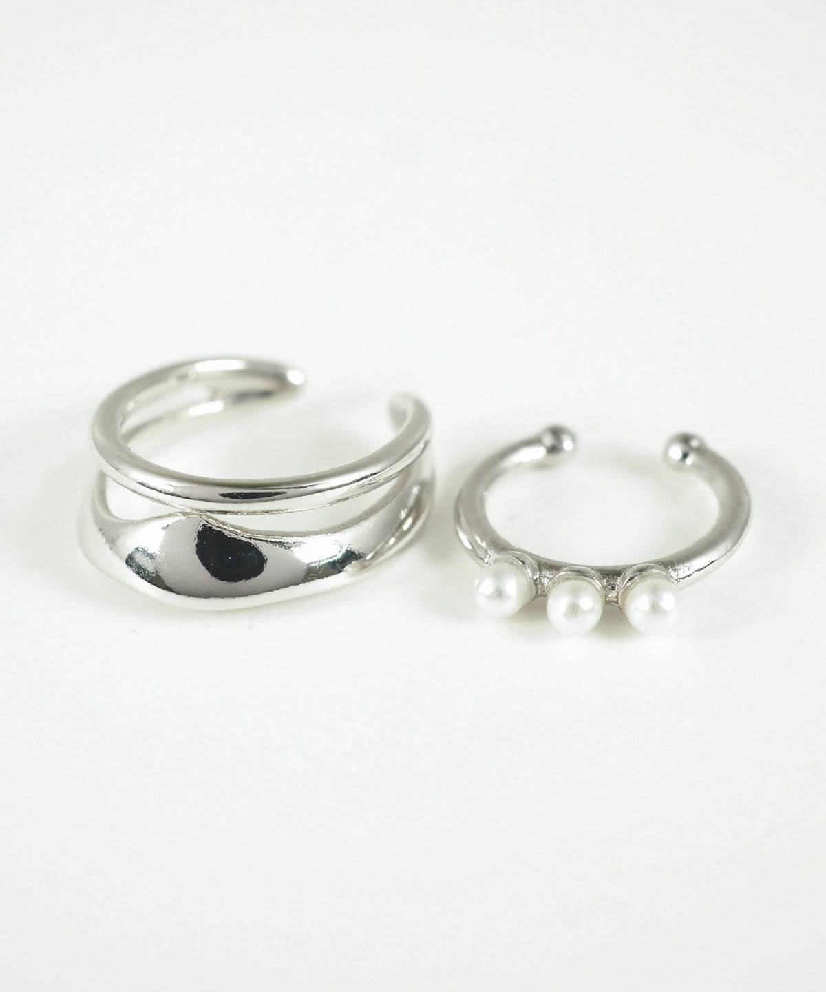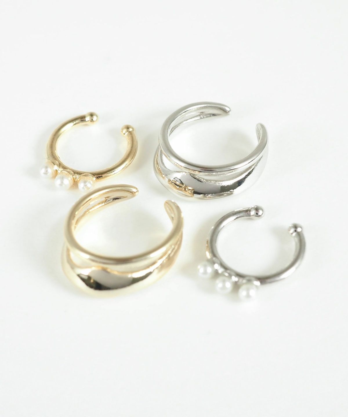 ウェーブメタル×3連パールセットイヤーカフ