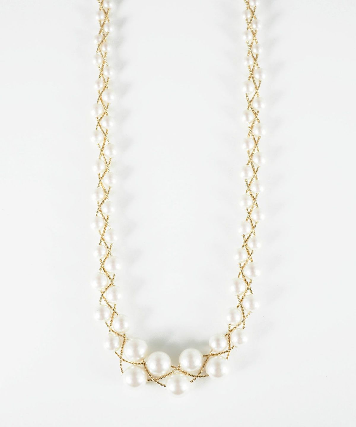 艶やかなパールを繊細な編み込みデザインで仕上げた上品な印象のブレイドネックレス。連なるパールの隙間から煌めく細身のチェーンが、顔周りに華やかさと抜け感をプラスします。中央に向かってパールが大きくなるグラデーションでデコルテを美しく演出。卒入学式、結婚式などのオケージョンシーンに大切な一日を彩る特別なアイテムとしておすすめです。