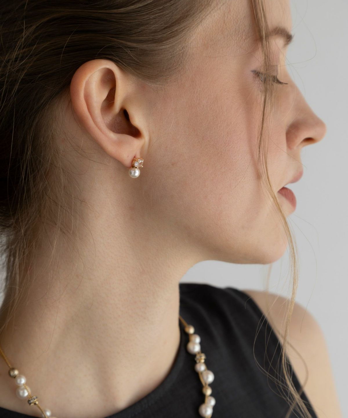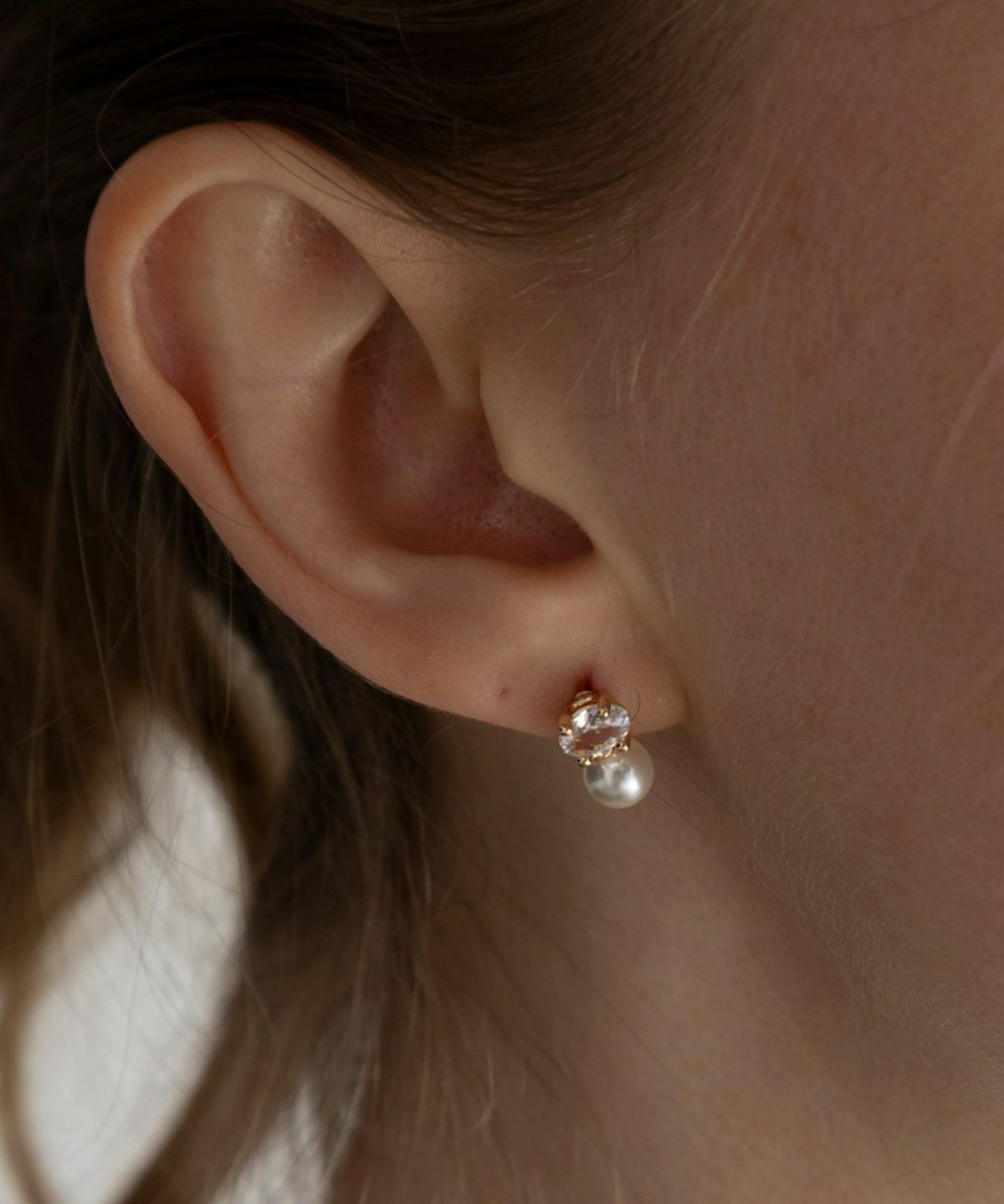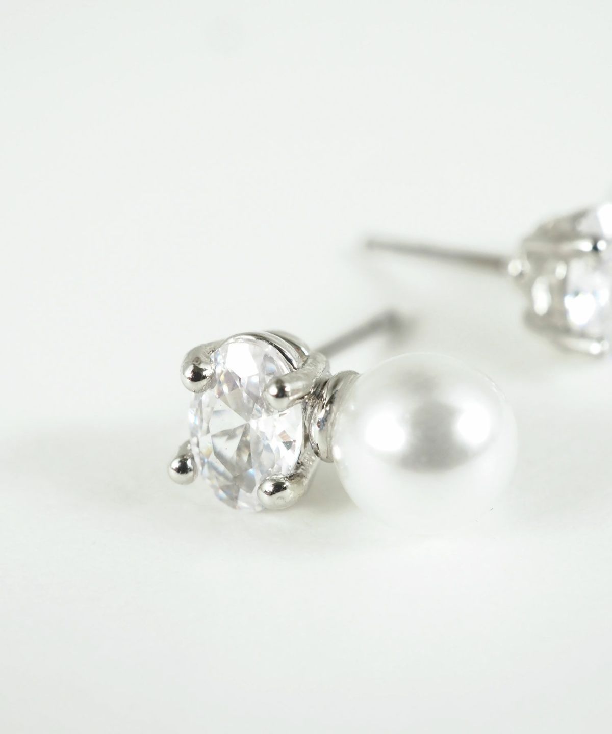 一粒のビジューと柔らかなパールの輝きを凝縮したミニマルで品格漂うピアス。オーバルカットのストーンが光を繊細に捉え、耳元にさりげない透明感をプラスします。どんな装いにも馴染むコンパクトなサイズ感ながらパールの質感が女性らしさを引き立て、お顔周りを清楚な印象に。デイリーコーデのアクセントにはもちろん、卒入式、結婚式などのオケージョンシーンに大切な一日を彩る特別なアイテムとしておすすめです。