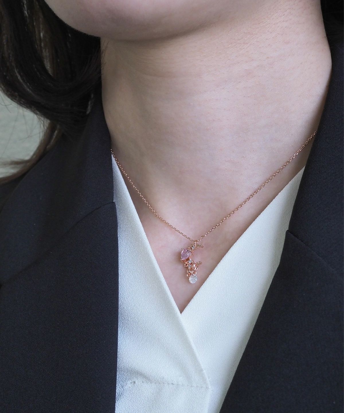 夜空に瞬く星・月を身にまとうロマンティックで幻想的なシリーズ。星が散りばめられた月モチーフに、ピンクのハートが添えられた可愛らしいネックレス。揺れるキュービックジルコニアが光を受けてさりげなく輝きます。