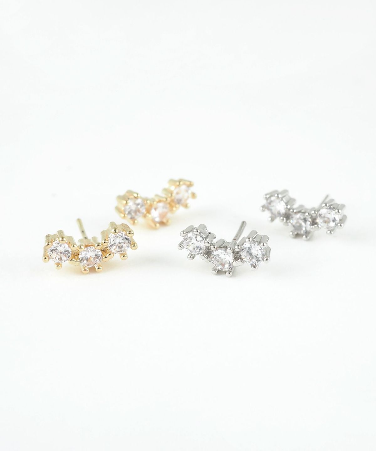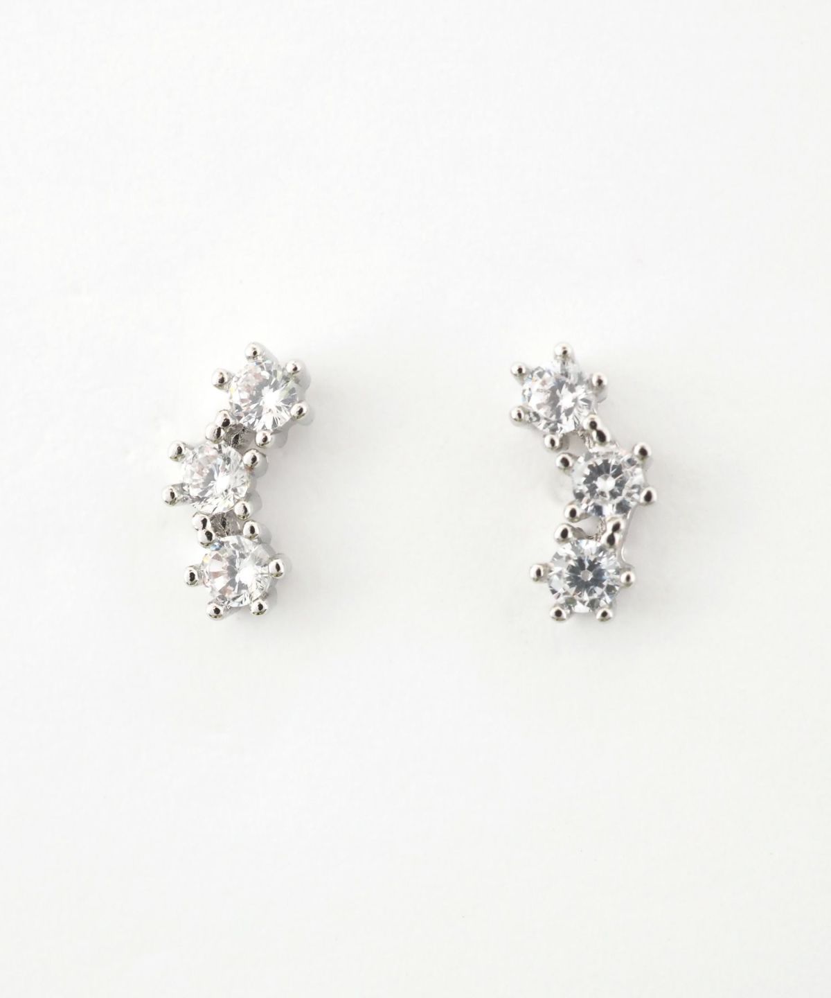上品な煌めきが横顔を華やかに彩る、サージカルステンレスポストピアス。 3つのキュービックジルコニアを、緩やかなカーブ状に配置。 耳のふちに沿うようなデザインは、お顔まわりに洗練された印象を与えます。 派手すぎないサイズ感ながら、光を受けるたびにキラキラと輝き、デイリーからフォーマルまで幅広く活躍します。差し込むだけで簡単に装着可能なスレッドレスタイプ。ペアピアス(両耳用)です。