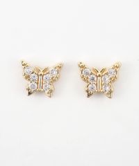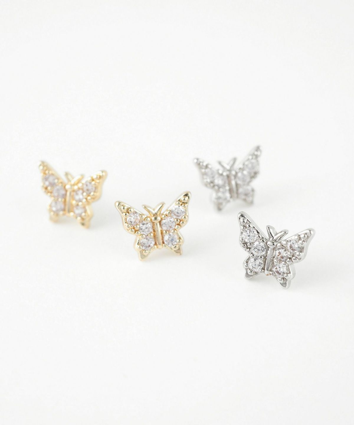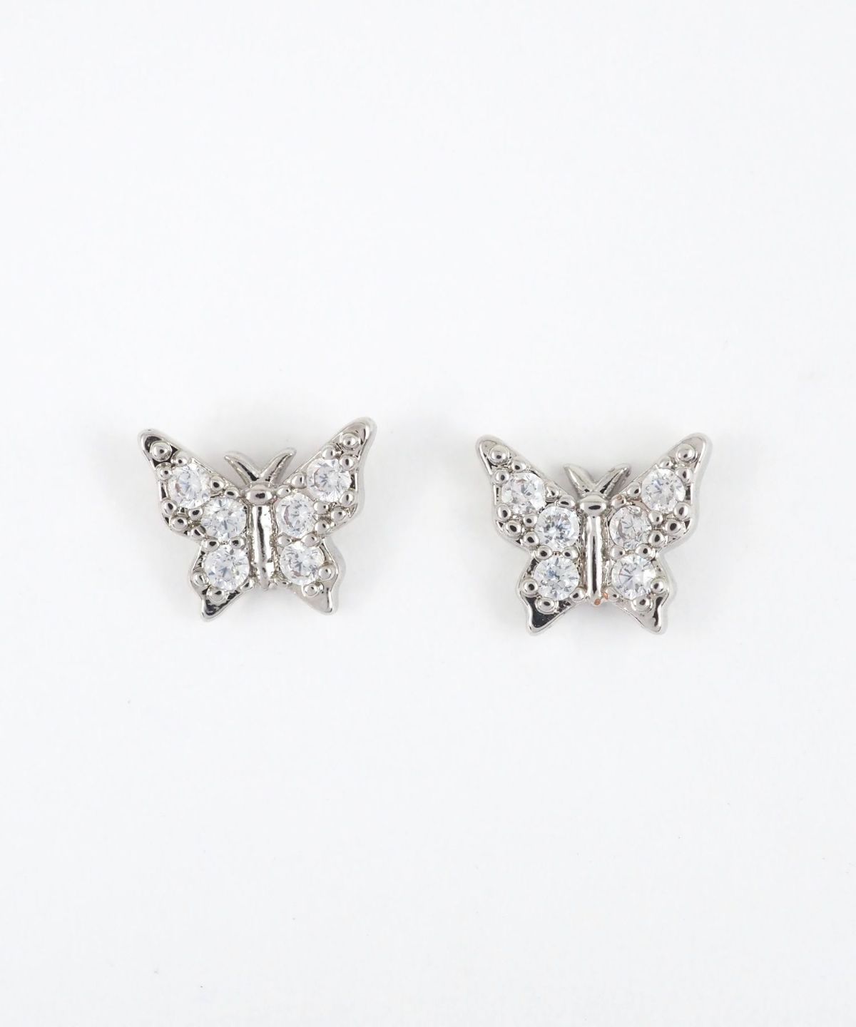 繊細なバタフライモチーフに、輝くキュービックジルコニアを敷き詰めたサージカルステンレスポストピアス。光を受けるたびにキラキラと輝き、お顔周りをパッと華やかに演出します。差し込むだけで装着可能なスレッドレスタイプ。ペアピアス(両耳用)です。