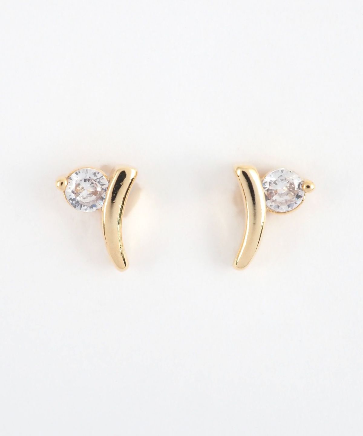 絶妙なカーブを描くメタルラインに、一粒の輝くキュービックジルコニアを添えたセラミックポストピアス。さりげなく華やかさをプラスしてくれる、ミニマルながらも存在感のあるデザイン。 耳のラインに沿うようなシルエットが、お顔周りをすっきりと上品に見せてくれます。肌に優しい非金属のセラミックポストは、傷つきにくく耐久性・衛生面にも優れているのが魅力。ペアピアス(両耳用)です。
