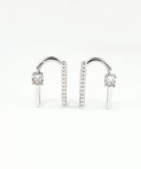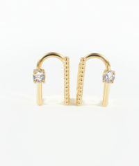一粒キュービック&ボールラインラウンドメタルイヤリング