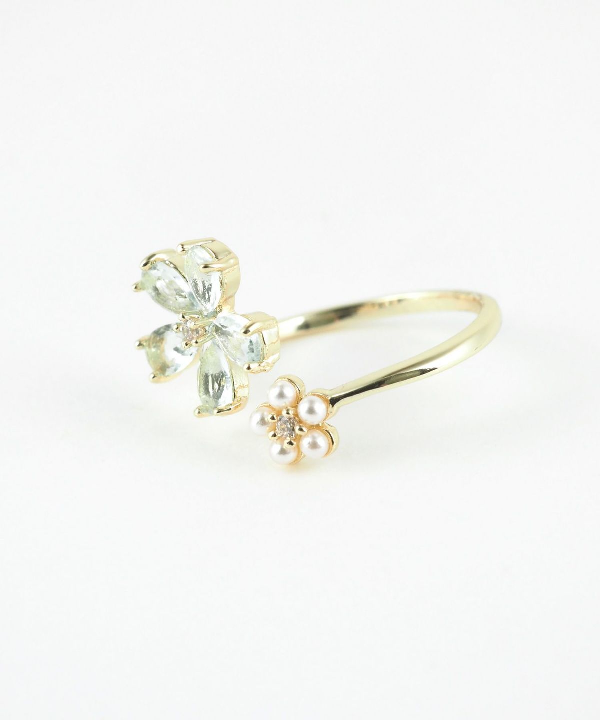 キュービック&パールフラワーオープンリング